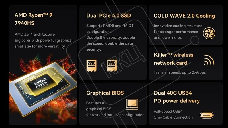 Мини ПК Minisforum UM790Pro/32Gb+1Tb (AMD R9 7940HS) 32Gb+1Tb, AMD Radeon780M, Win11 Pro