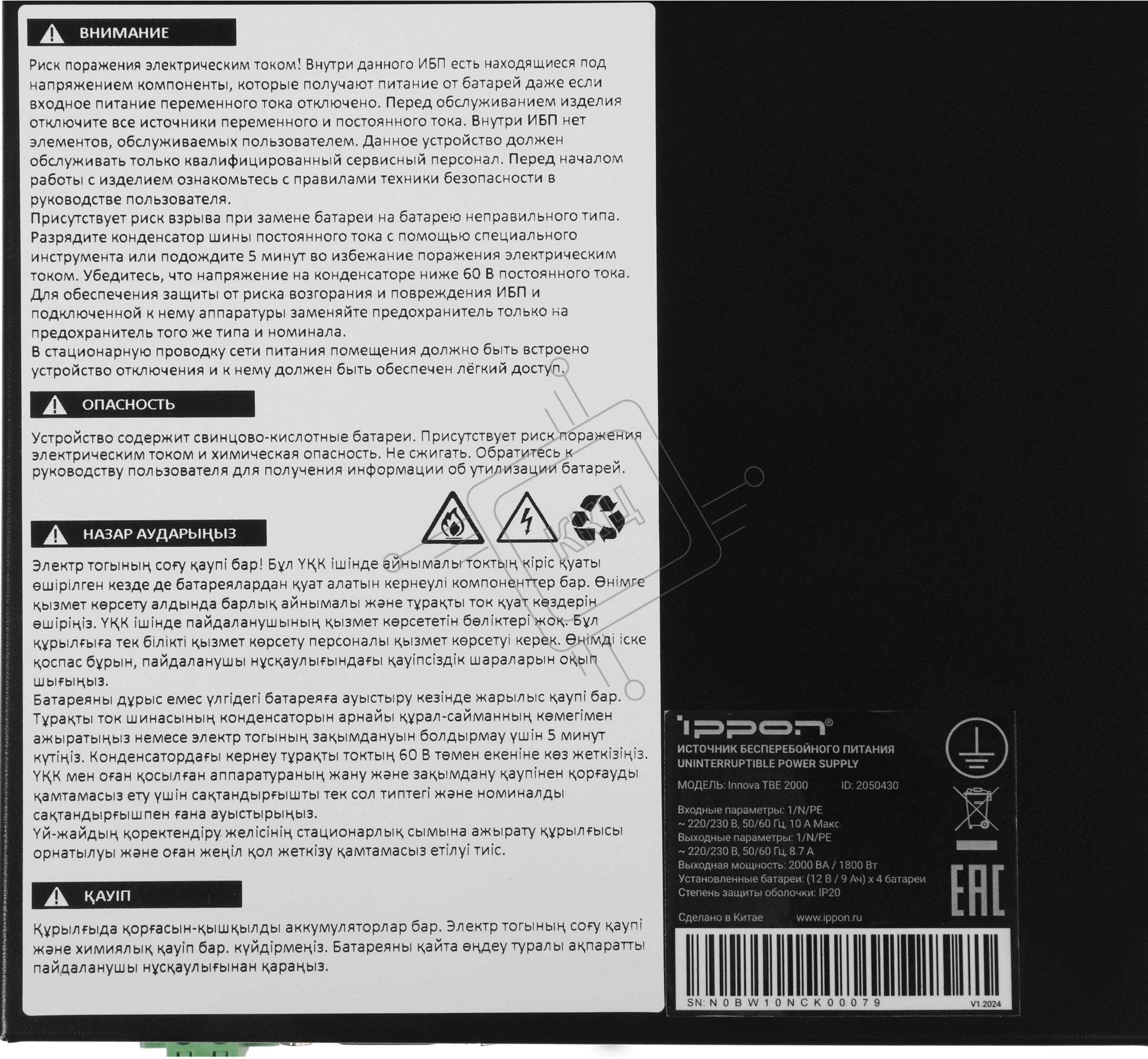 Источник бесперебойного питания Ippon Innova TbE 2000 1800Вт 2000ВА черный