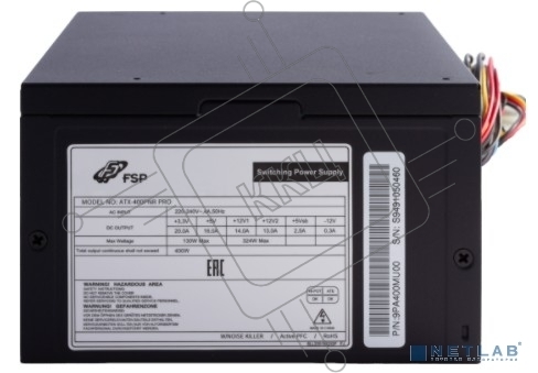 Блок питания FSP ATX-400PNR PRO 400W, ATX 2.3, 12cm fan, 80 PLUS, APFC