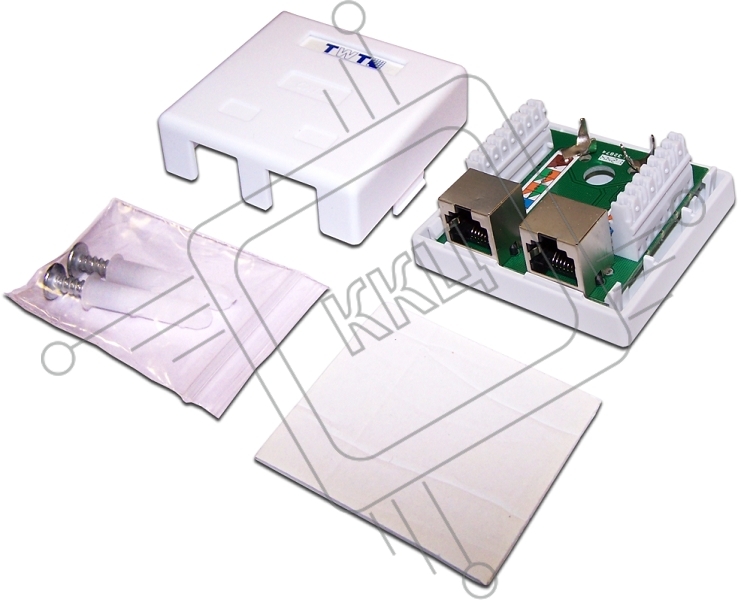 Настенная розетка, 2 порта RJ-45 категории 5е, STP, белая