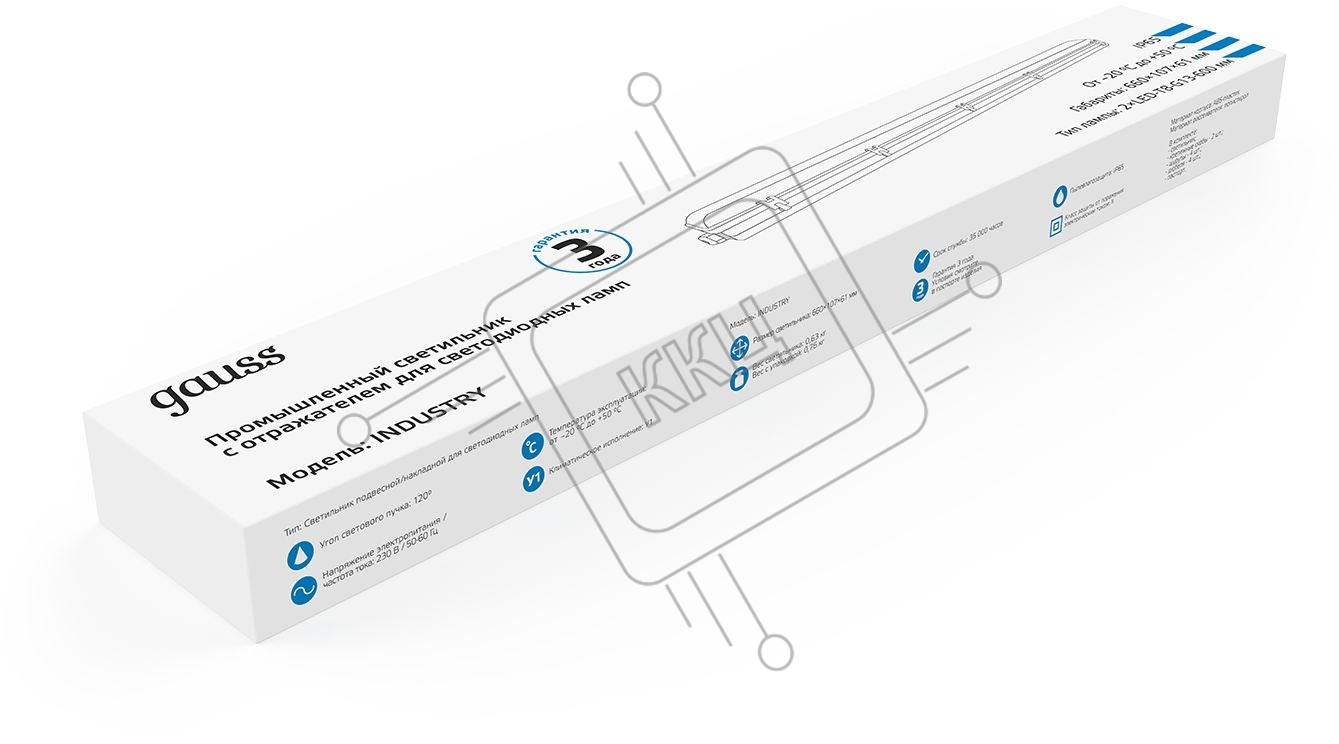 Светильник с отражателем влагозащ. СПП-Т8-G13 INDUSTRY 666х85х55мм IP65 для LED ламп 2х600мм Gauss 909410260