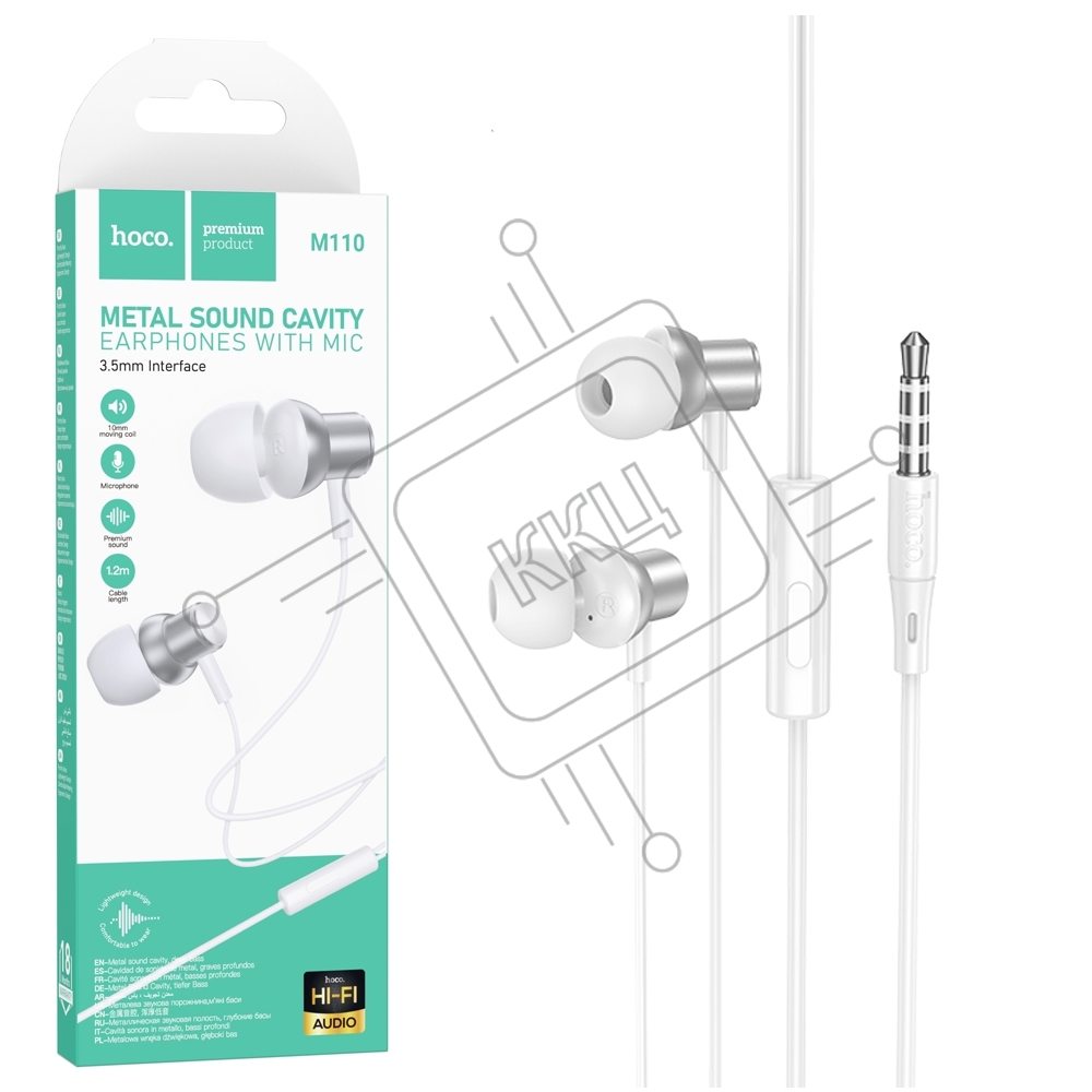 Проводные наушники Hoco M110 Encourage серебристый, внутриканальные, jack 3.5 мм