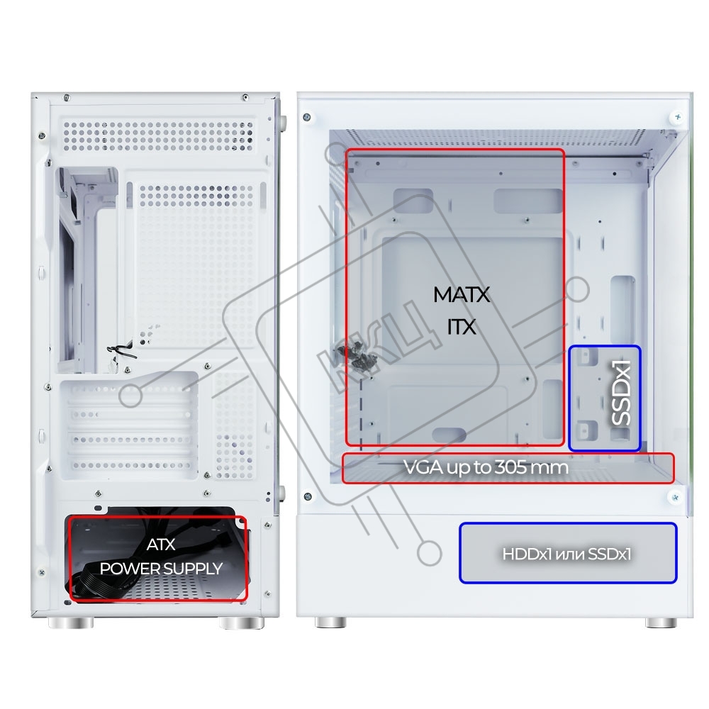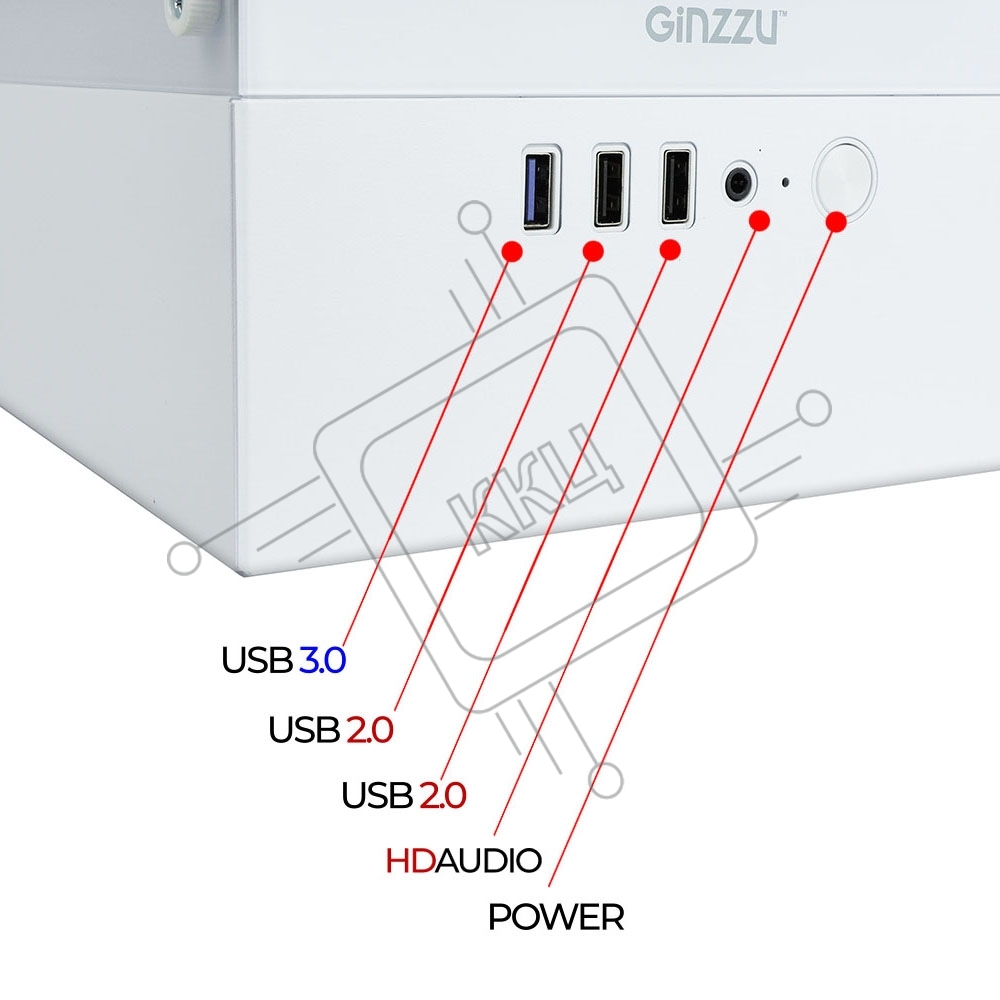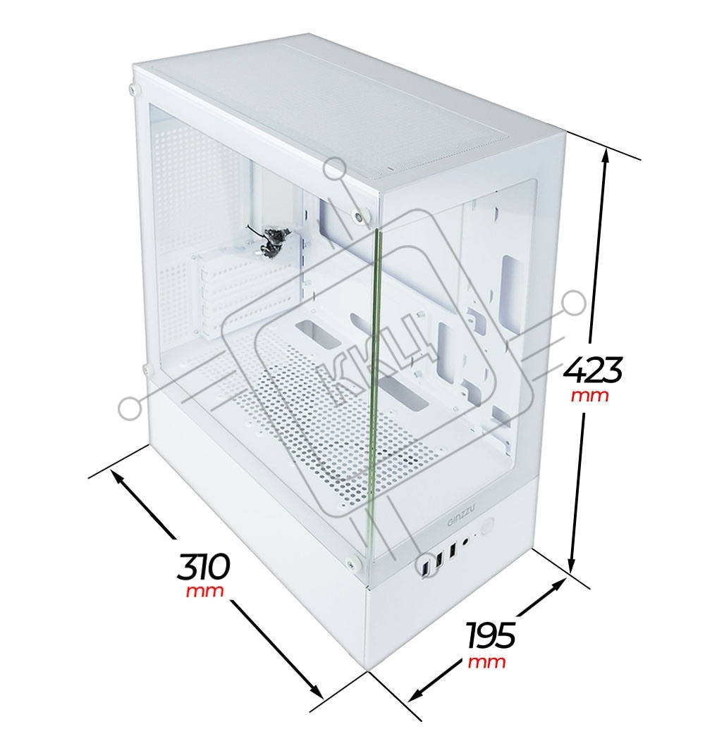 Корпус Ginzzu CL480 mATX передняя панель Стекло Белый