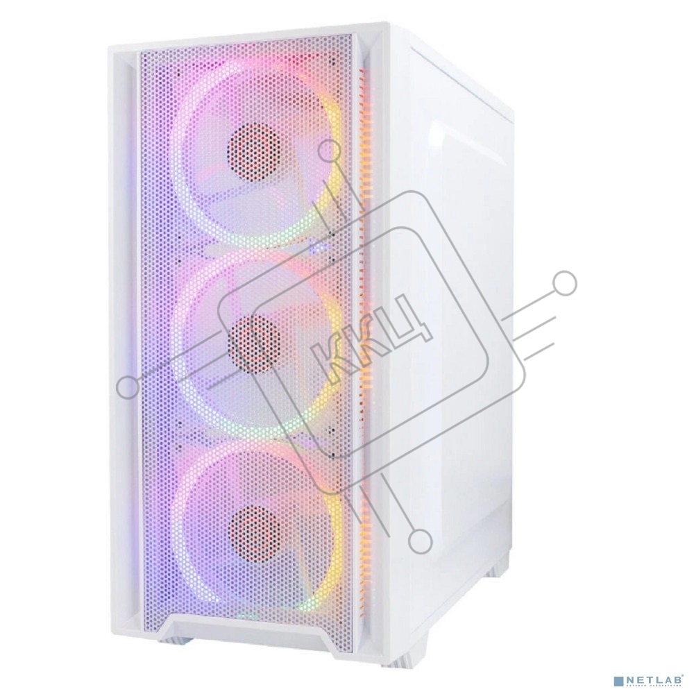 Корпус Ginzzu CL640 mATX FAN 4*12FRGb передняя панель Сетка Белый