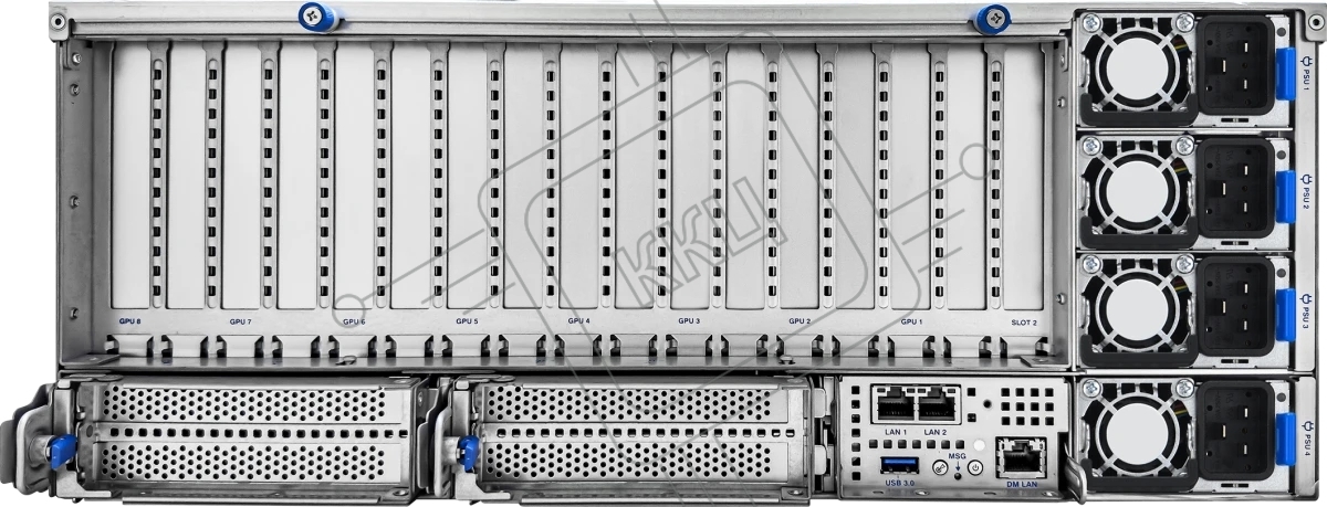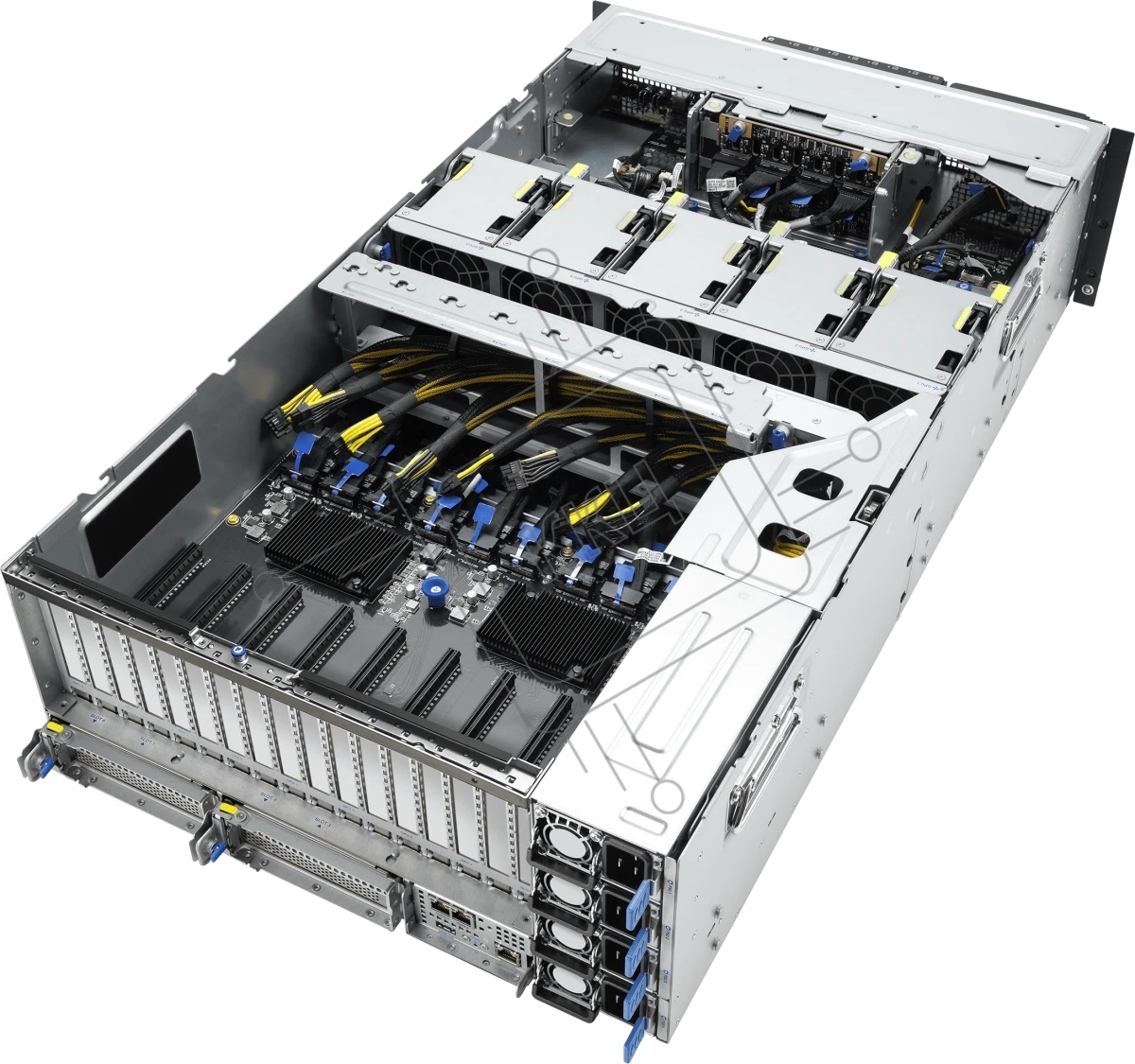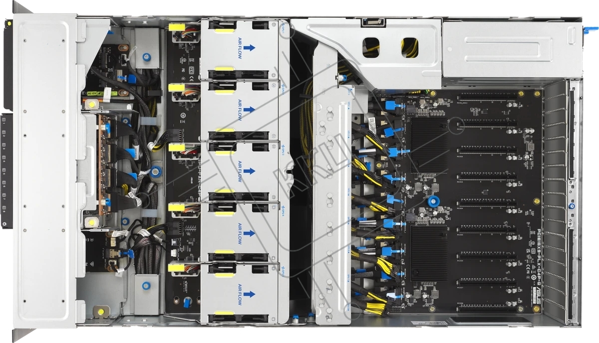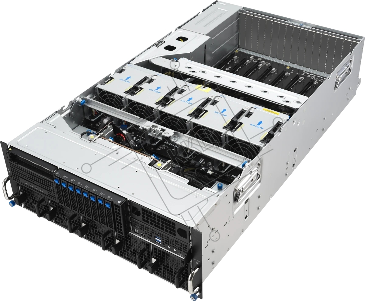 Серверная платформа ASUS ESC8000A-E13P, 4U, 2x SP5 (LGA 6096),24x DDR5 6400, 8x 2.5'' hsb NVME, up to 14x PCIe*, 2x M.2 22110 NVME, 1x 2-port 10Gbe RJ-45 Intel 710 LAN, up to 8 dual-slot GPUs, 3+1 3200W
