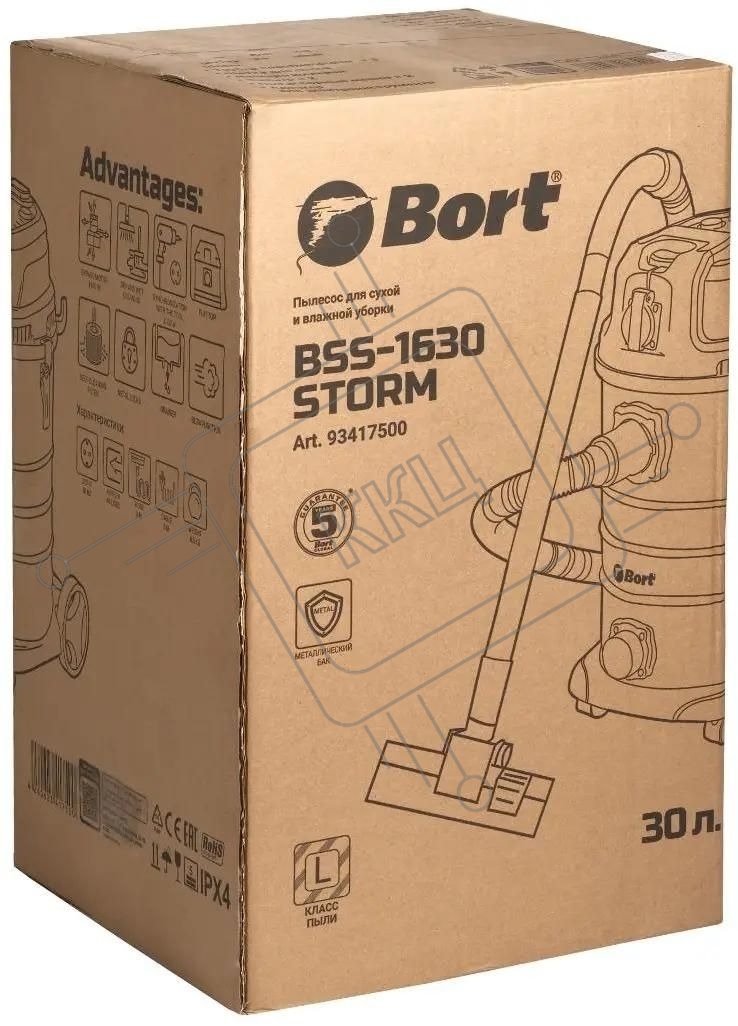 Строительный пылесос Bort BSS-1630-Storm 1600Вт (уборка: сухая/влажная) синий