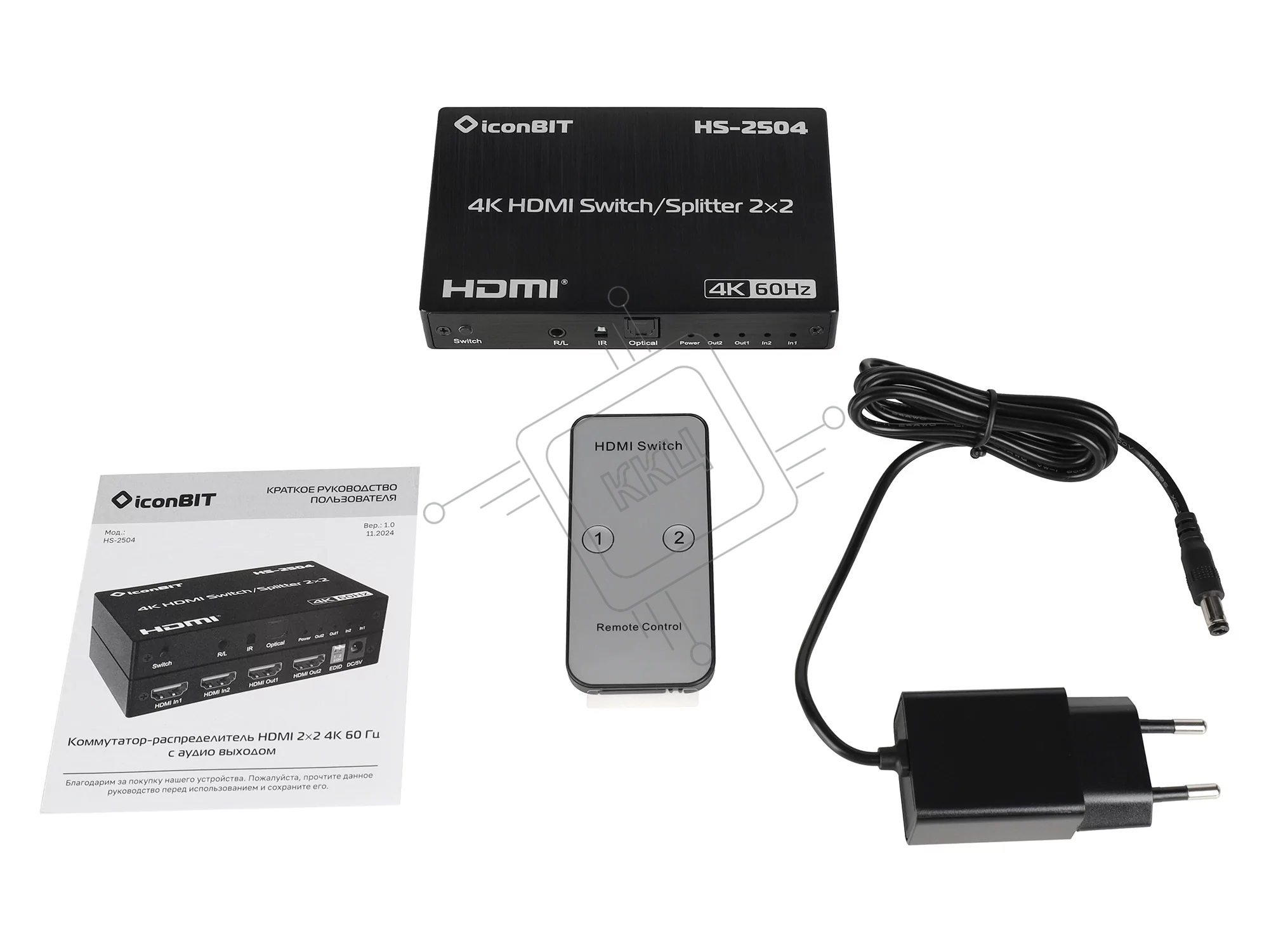 Коммутатор, усилитель распределитель HDMI IconBIT HS-2504 2х2, поддержка 4K60