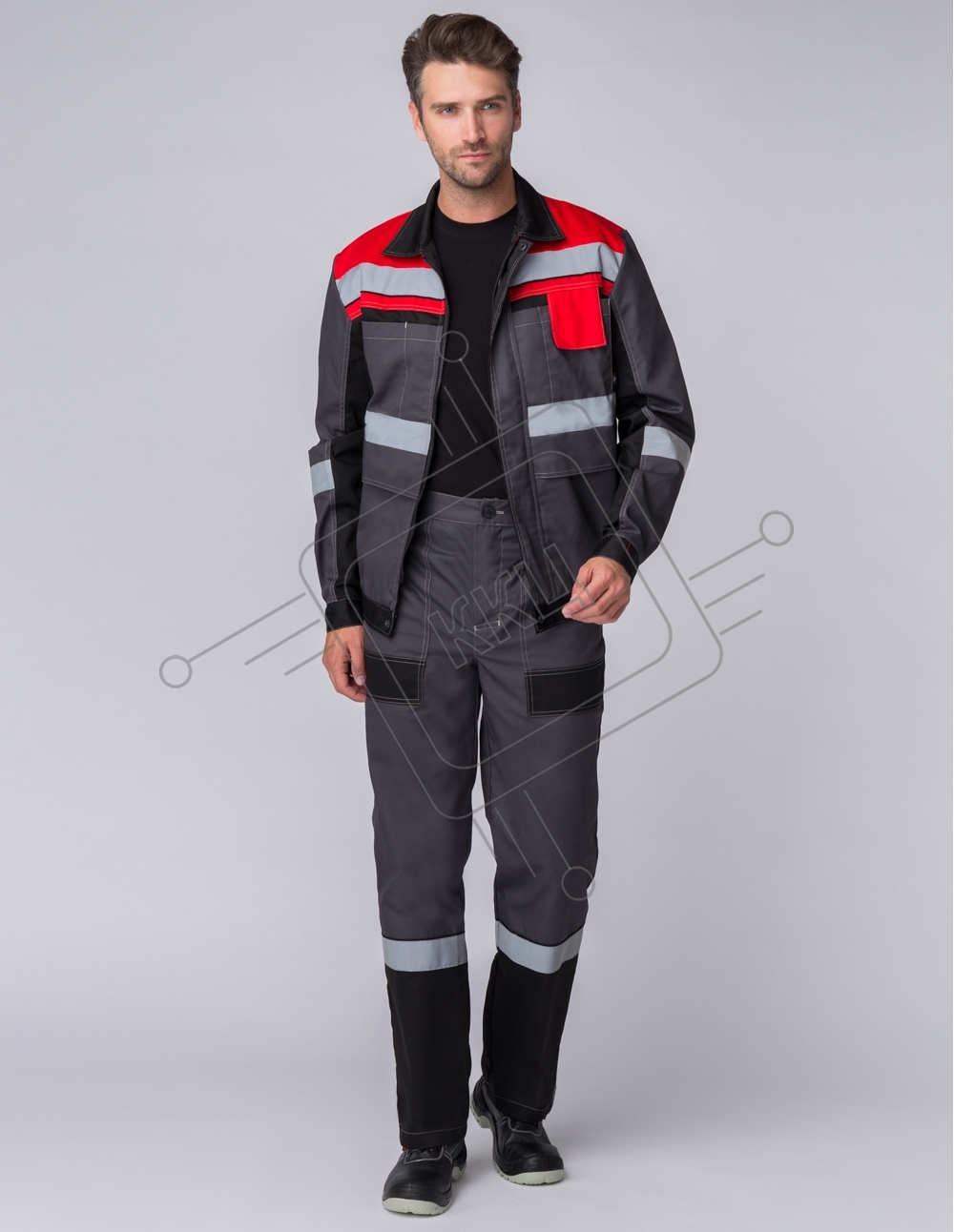 Костюм Виват-1 Премиум (ткань Смесовая,240) брюки, серый черный красный, 52-54 182-188