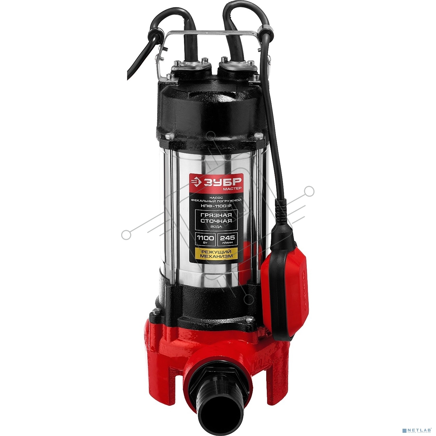 Насос ЗУБР НПФ-1100-Р фекальный погружной 1100Вт пропускная способность 245 л/мин напор 8м чугунн