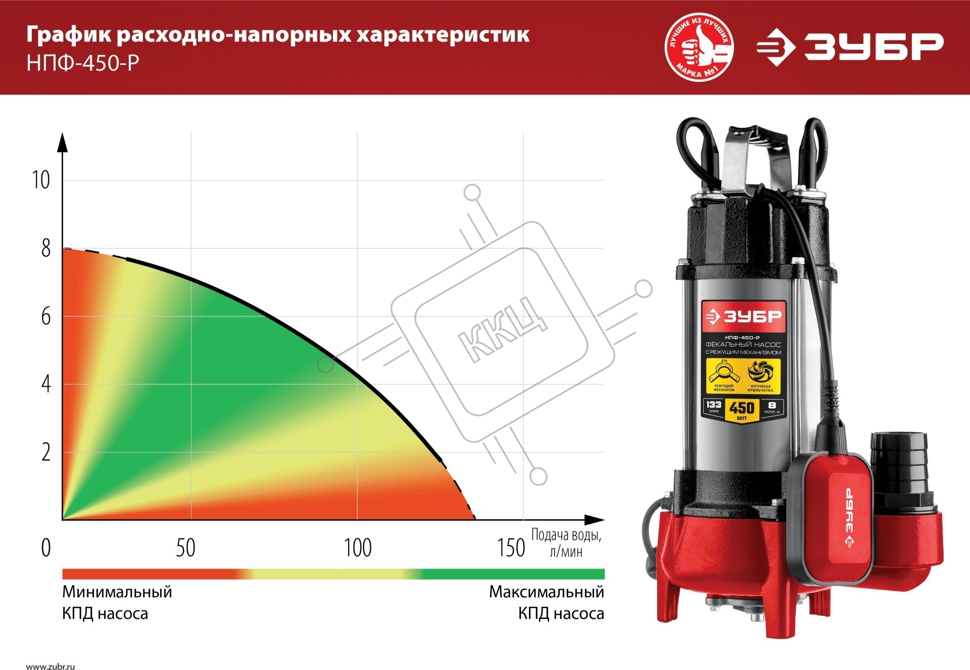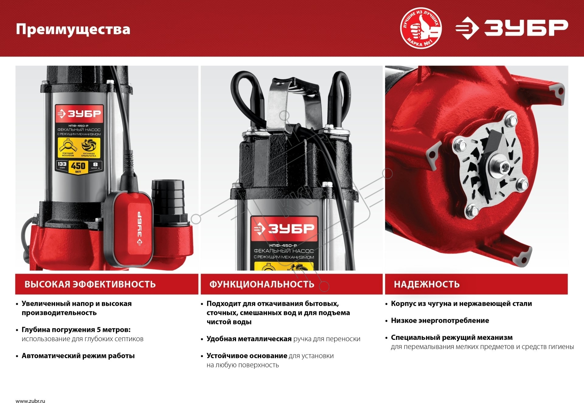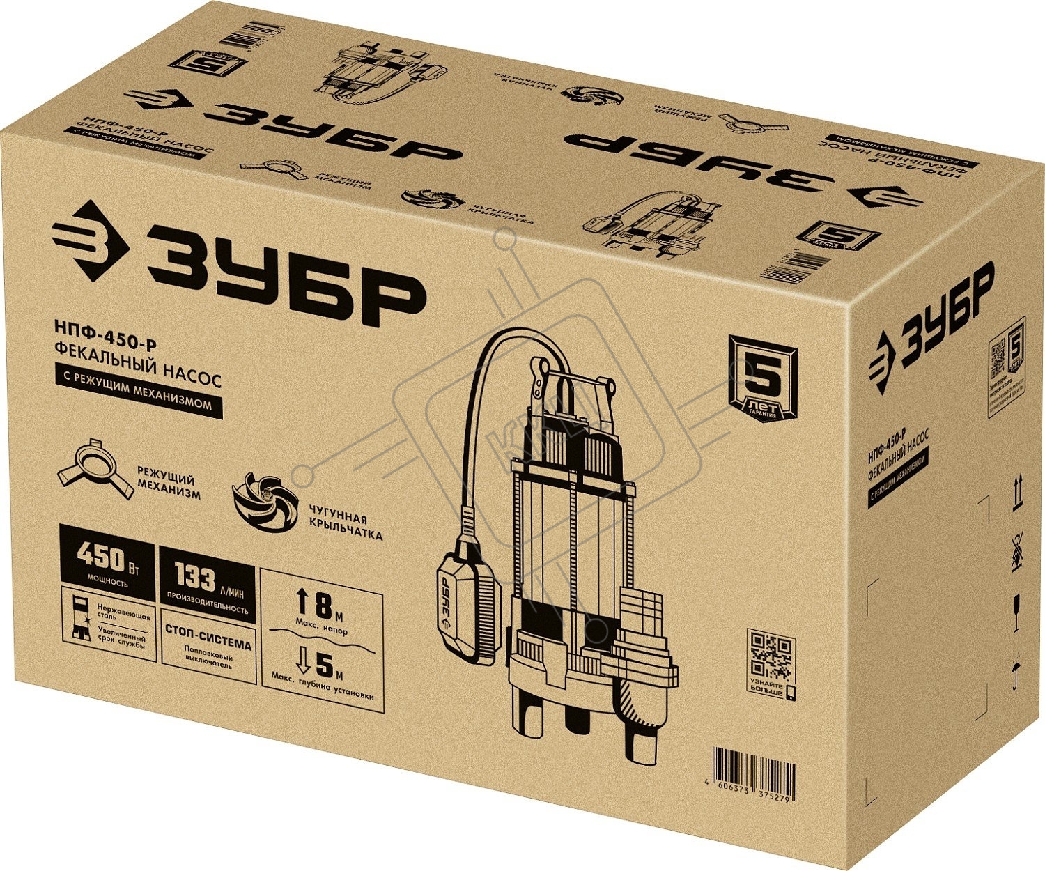 Насос ЗУБР НПФ-450-Р фекальный с режущим механизмом, 450 Вт