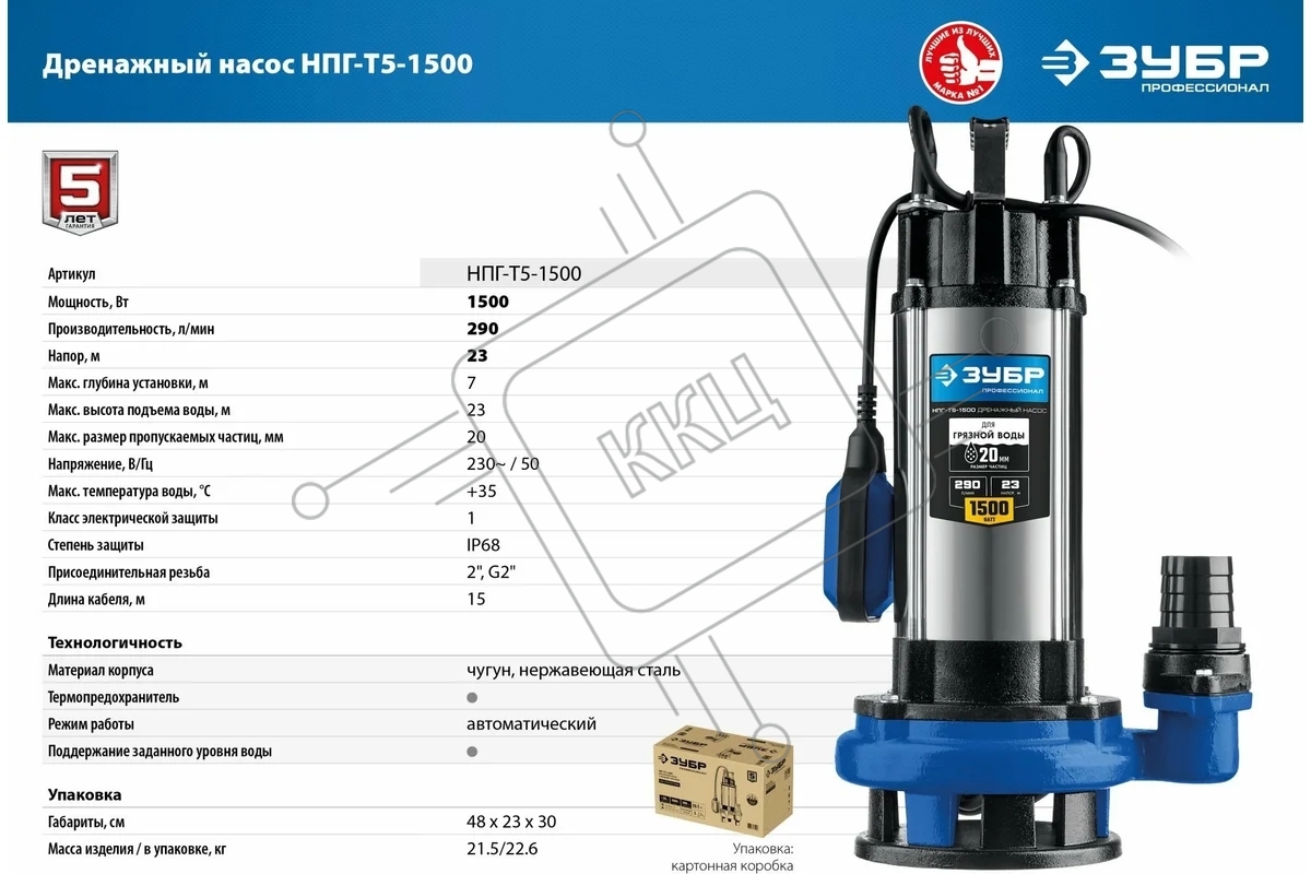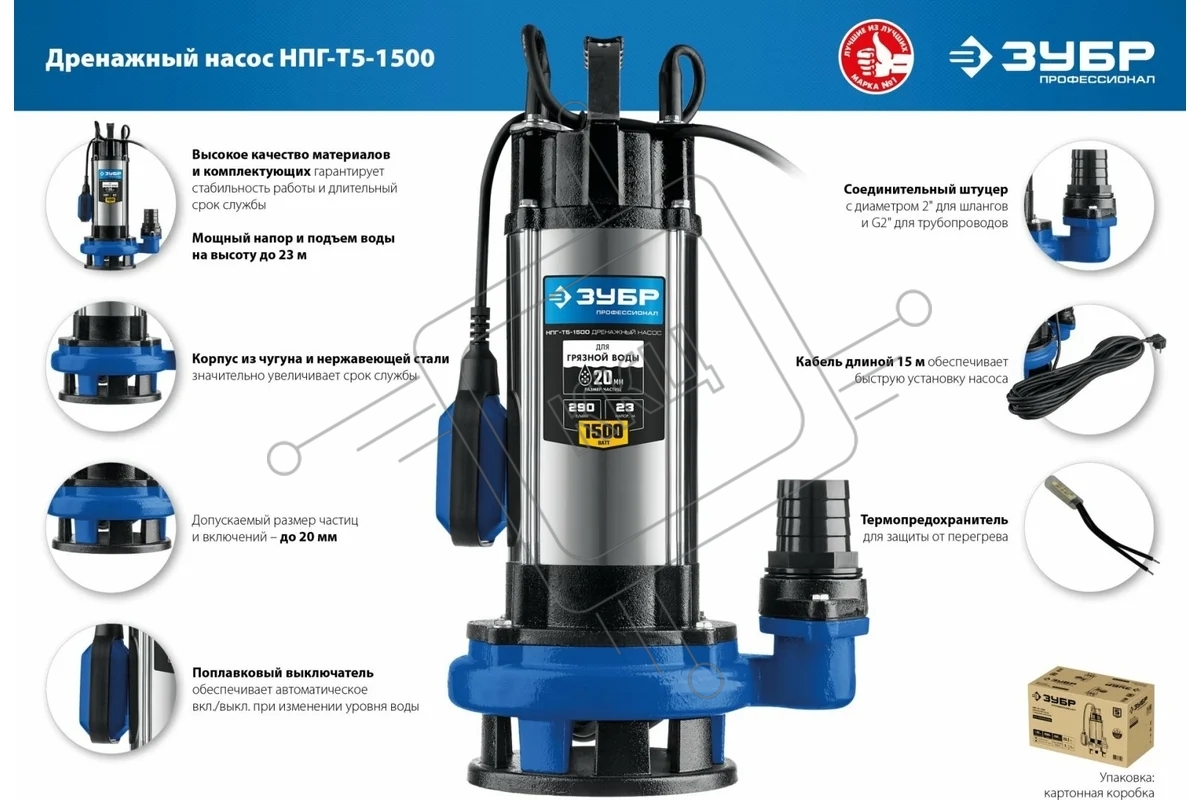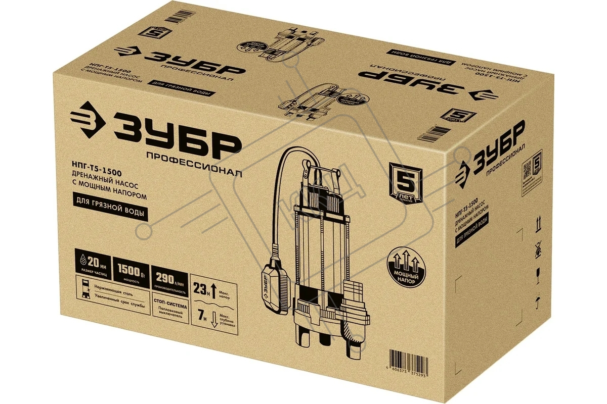 Насос ЗУБР Профессионал НПГ-Т5-1500 дренажный с большим напором, 1500 Вт