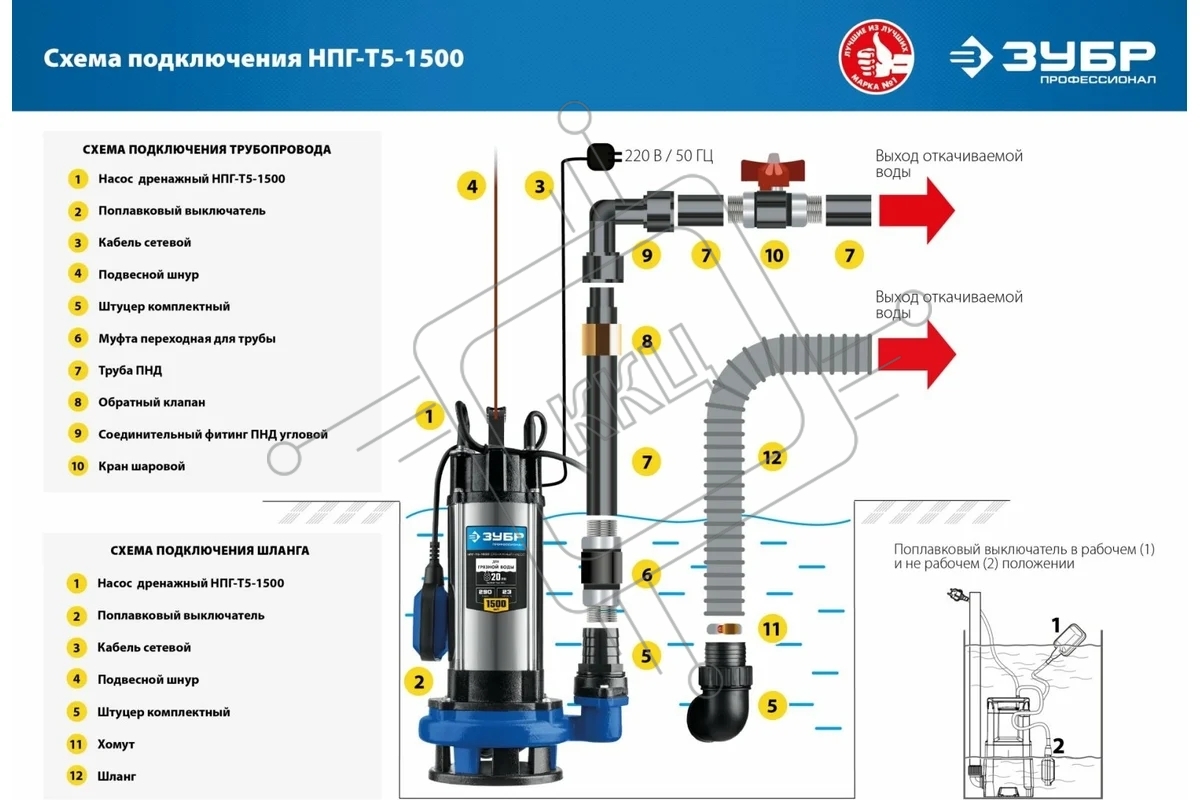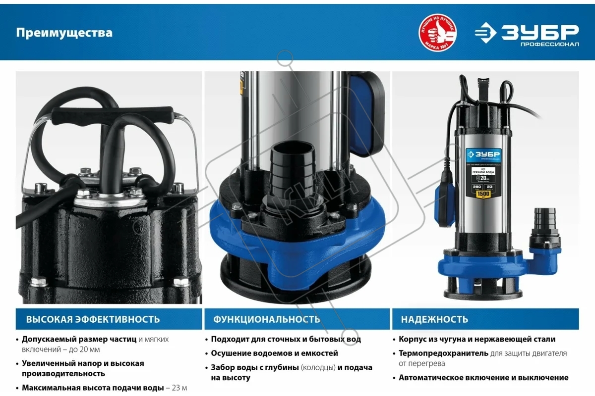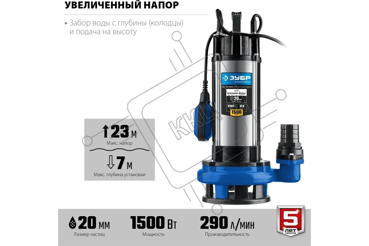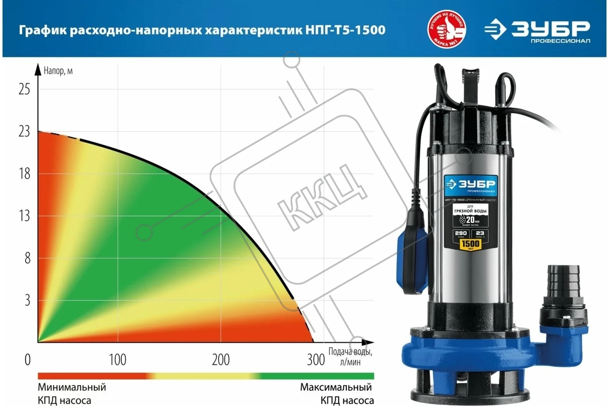 Насос ЗУБР Профессионал НПГ-Т5-1500 дренажный с большим напором, 1500 Вт