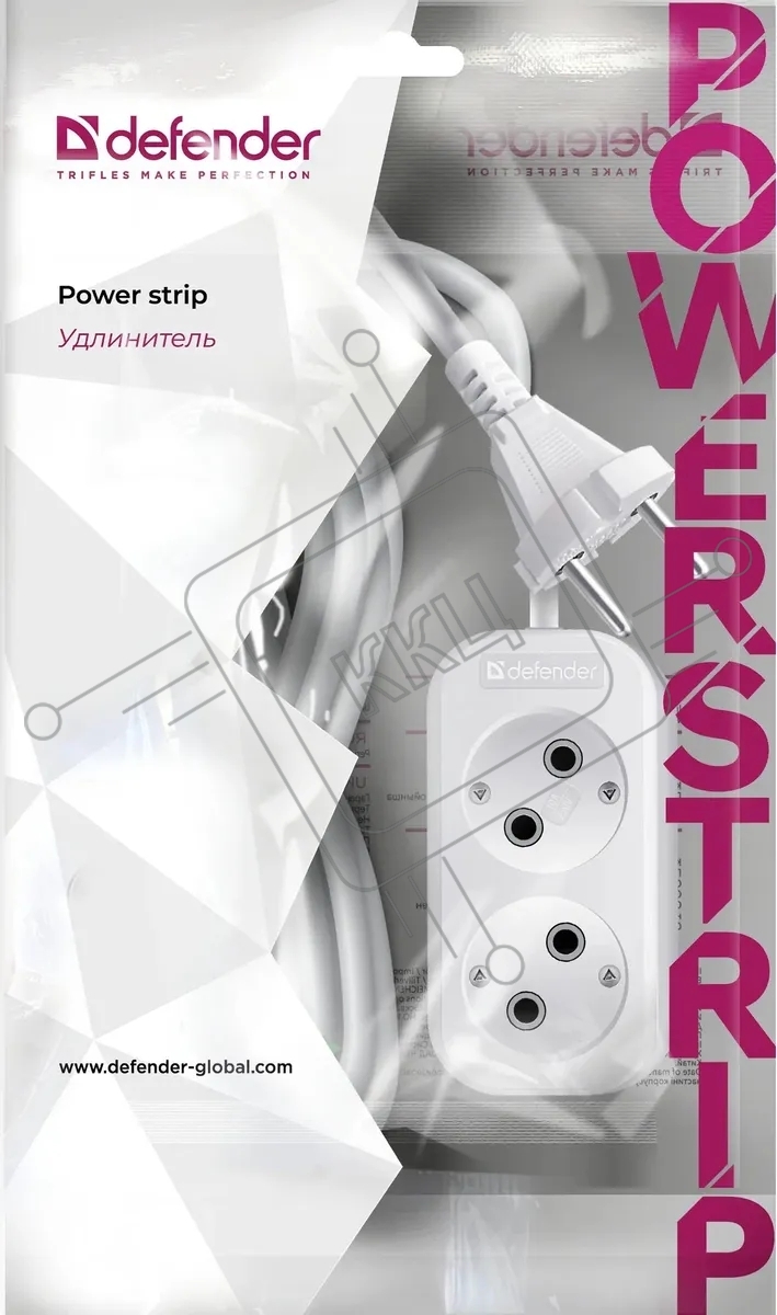 Удлинитель бытовой Defender B220 - 2 роз х 5 м, белый