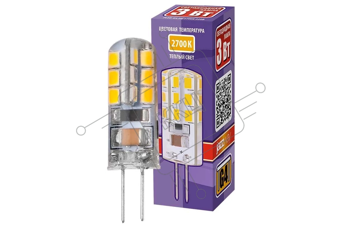 Лампа светодиодная JazzWay PLED-G4 3Вт капсульная 2700К тепл. белый G4 200лм 220-230В