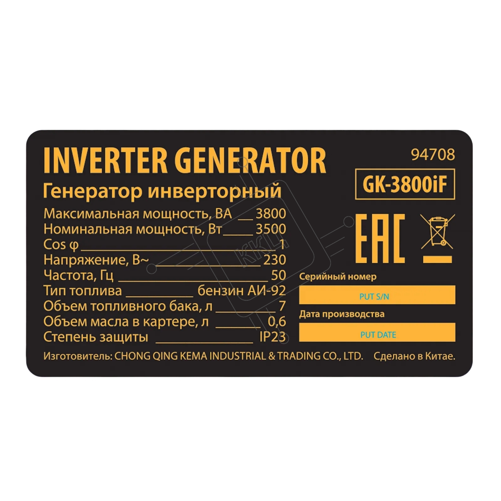 Генератор инверторный Denzel GK-3800iF, 3,8 кВт, 230 В, ручной старт