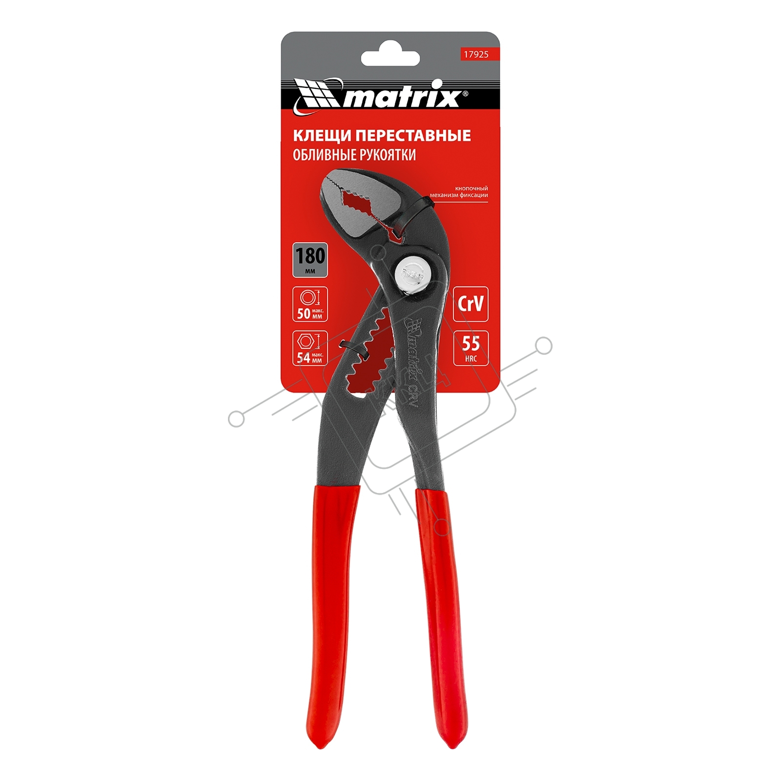 Переставные клещи 180 мм, кнопочный механизм, хром-ванадий, обливные рукоятки Matrix