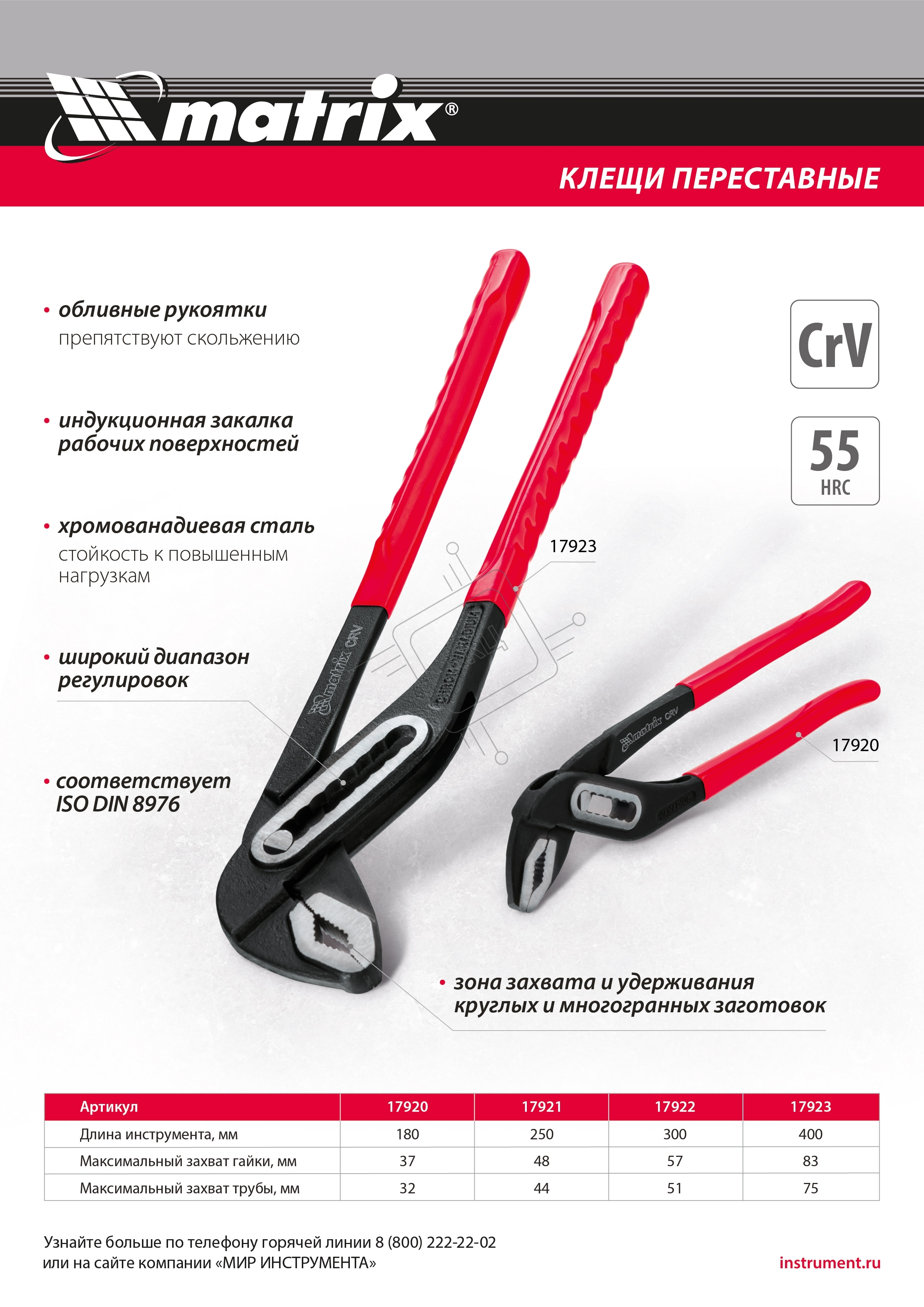 Переставные клещи 250 мм, хром-ванадий, обливные рукоятки Matrix