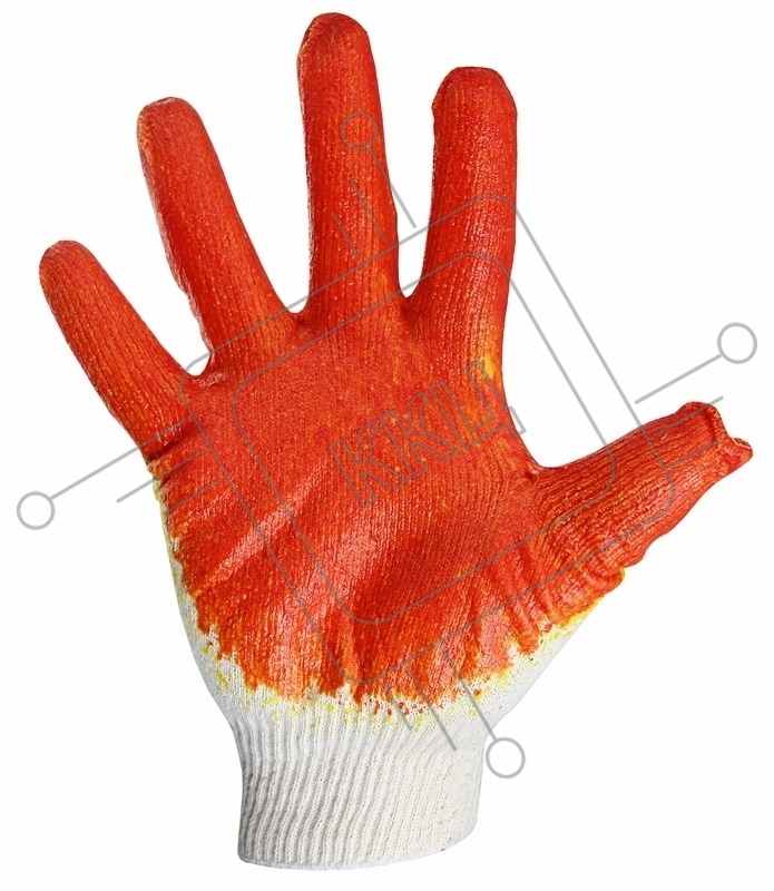 Перчатки х/б с одинарным латексным покрытием, 5 нитей, 36 г, 10 класс вязки, красного цвета