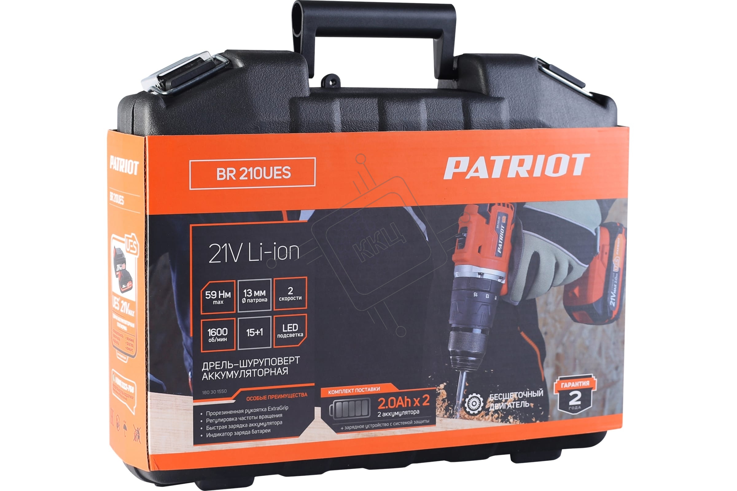 Дрель-шуруповерт Patriot BR 210Li, Аккумуляторная, 21В, 2 АКБ, Кейс