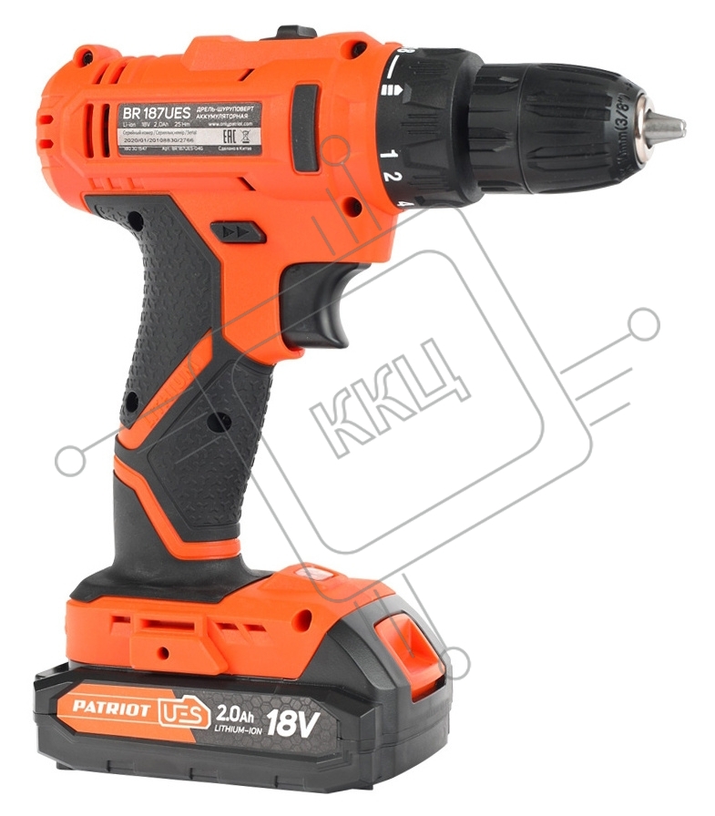 Дрель-шуруповерт Patriot BR 187UES, Аккумуляторная, 18В, 2 АКБ, Кейс