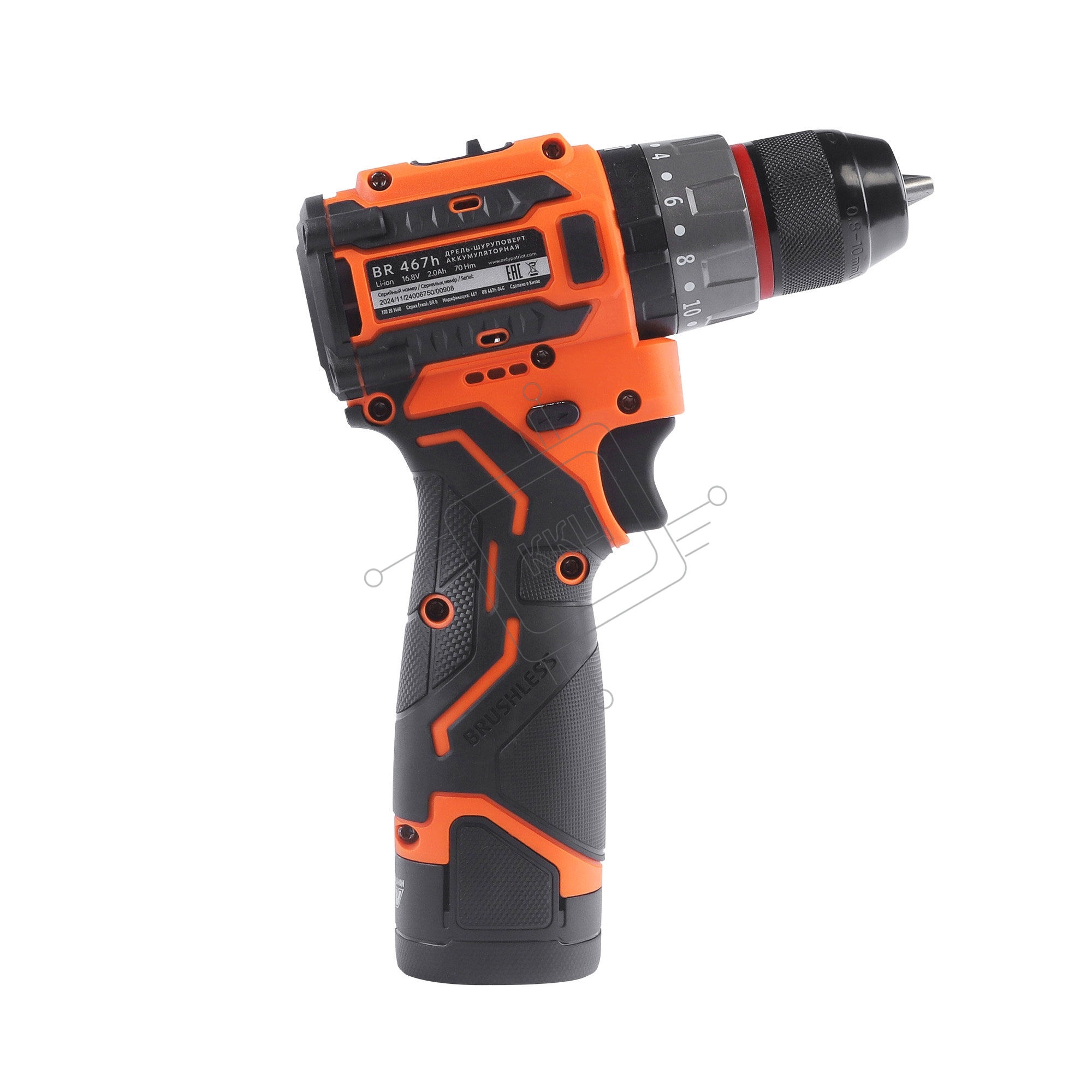 Дрель-шуруповерт аккумуляторная PATRIOT BR 467h BL, 2 АКБ Li-Ion, 16.8 В, 2,0 Ач, 70Нм, удар, 2 скорости, кейс, БЕСЩЕТОЧНЫЙ ЭД