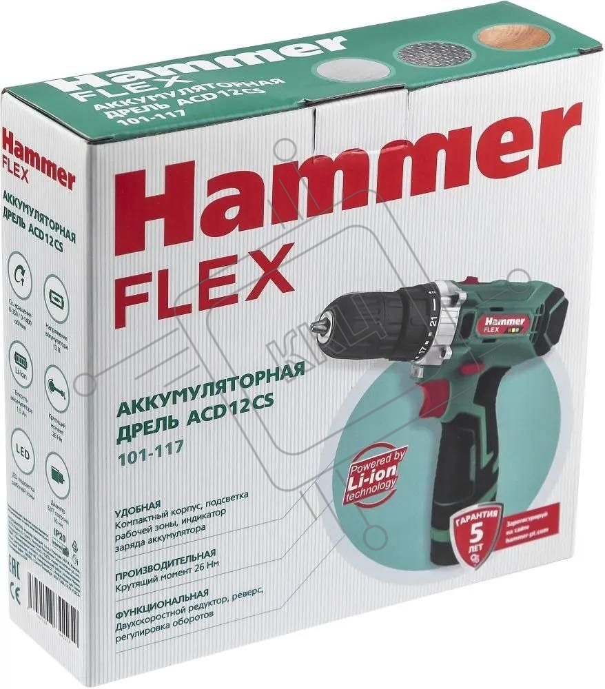Дрель-шуруповерт аккумуляторная Haммer ACD12CS, Аккумуляторная, 12В