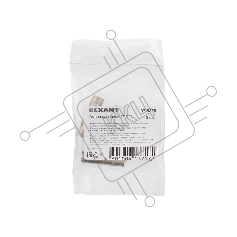 Гильза ГМЛ 16-6 (16 мм² - Ø 6 мм) ГОСТ 23469.3-79 (в упак. 5 шт.) Rexant
