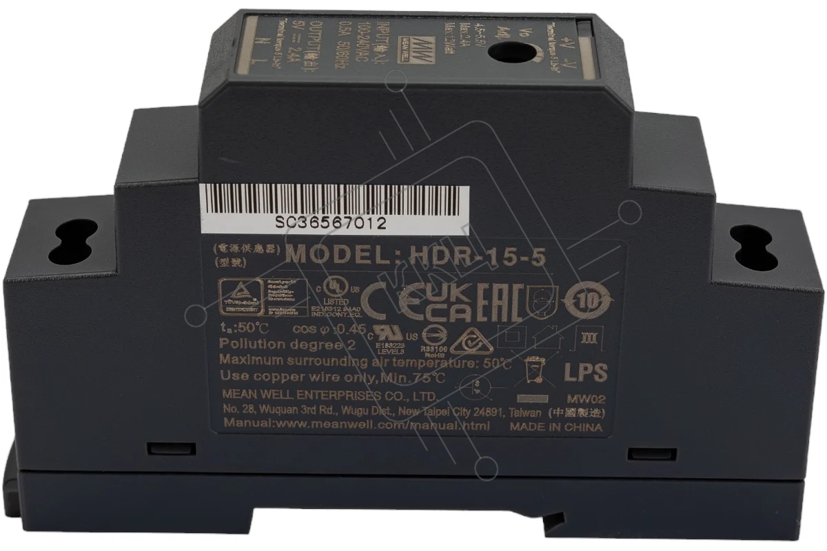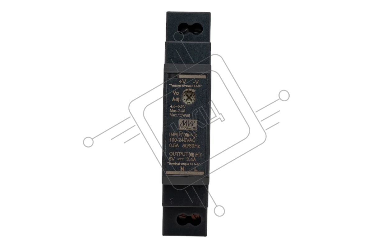 Блок питания AC-DC, 12Вт, вход 85-264 В AC 47-63Гц,120-370В DC, выход 5В,2.4А, в кожухе на DIN-рейку
