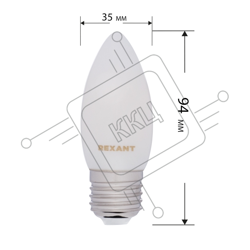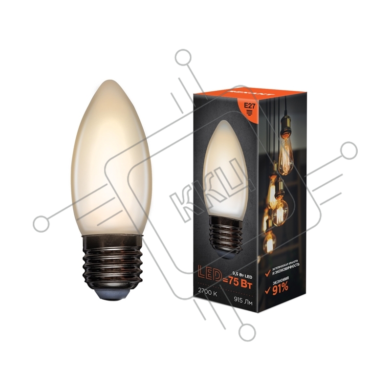 Лампа светодиодная филаментная Rexant Свеча CN35 9.5 Вт 915 Лм 2700K E27 матовая колба