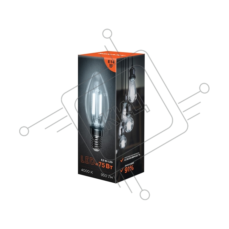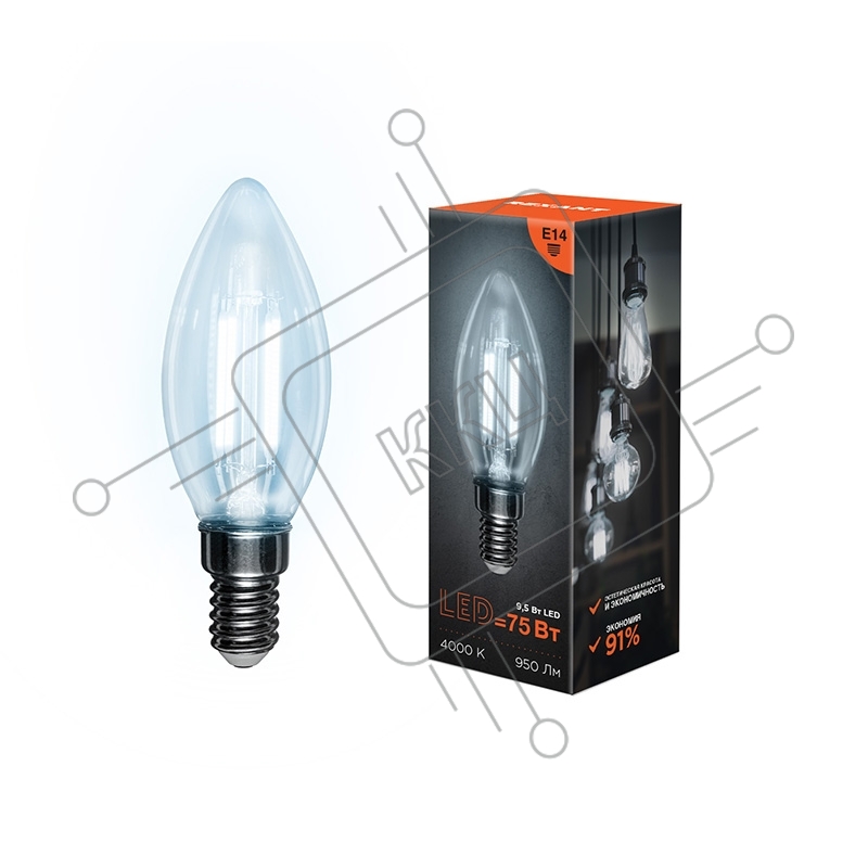Лампа светодиодная филаментная Rexant Свеча CN35 9.5 Вт 950 Лм 4000K E14 прозрачная колба