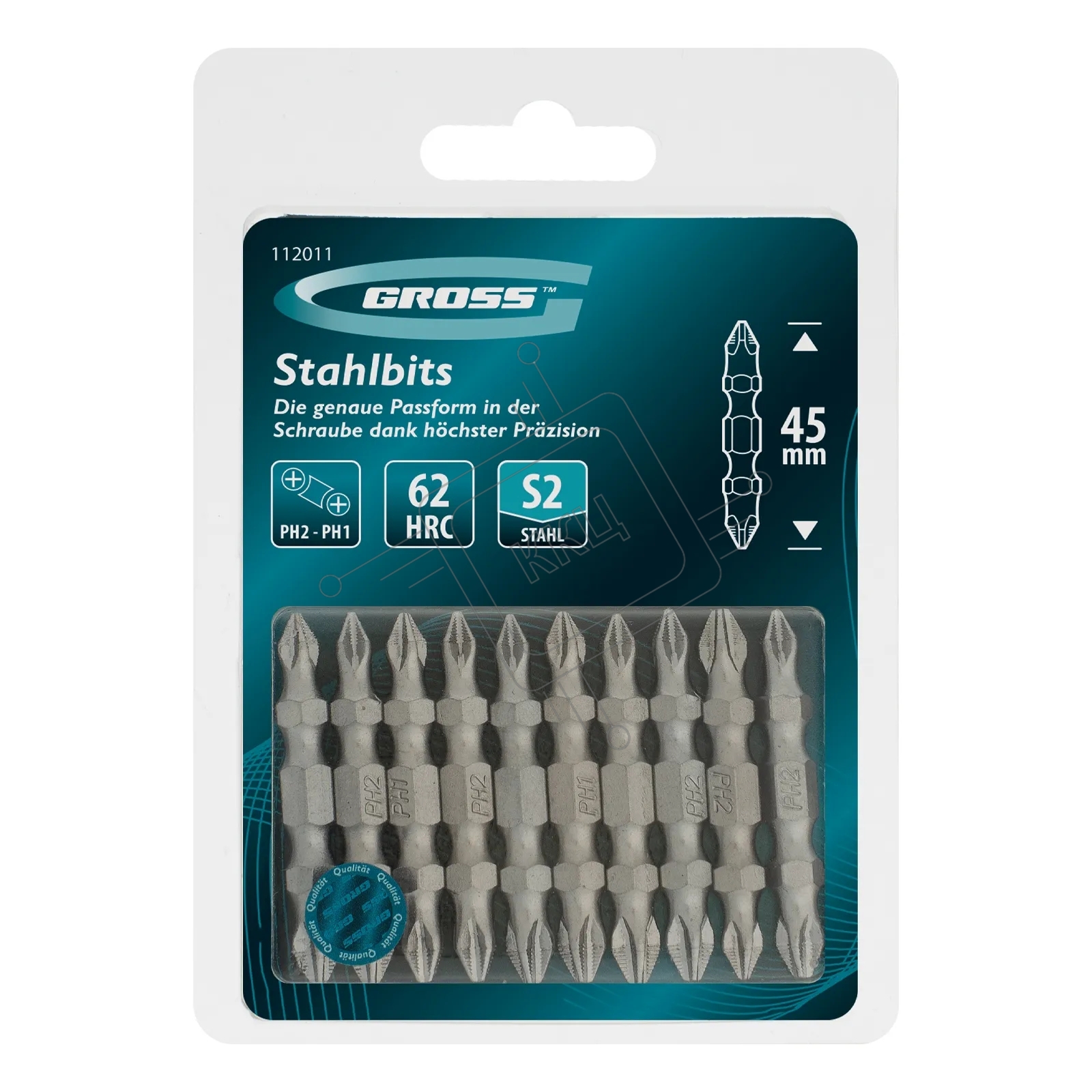 Бита двухстор. Gross PH2-PH1х45мм, сталь S2, 10шт.
