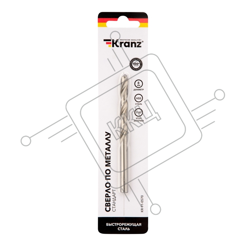 Сверло по металлу 8,0х117х75 мм HSS (1 шт. в упаковке) DIN 338 Kranz