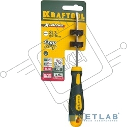 Отвертка KRAFTOOL "EXPERT", Cr-Mo-V сталь, двухкомпонентная противоскользящая рукоятка, SL, 3,0x80 мм [250071-3.0-080]