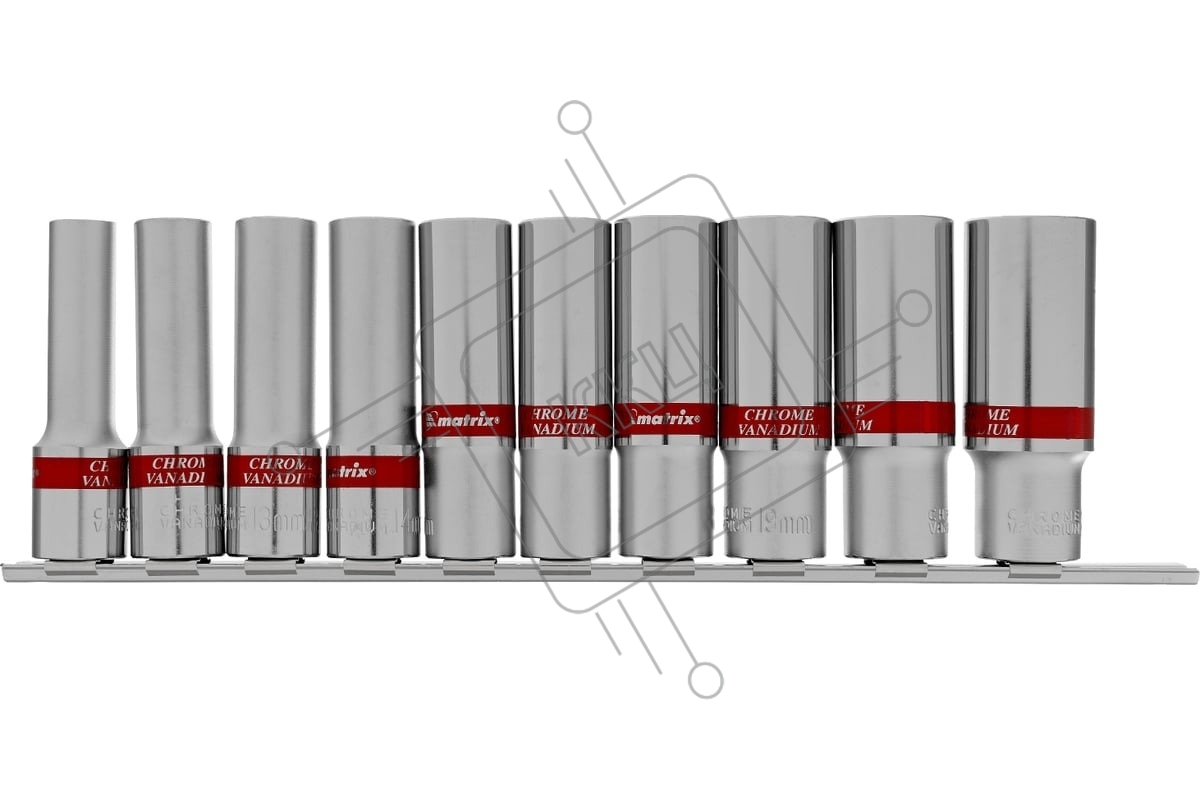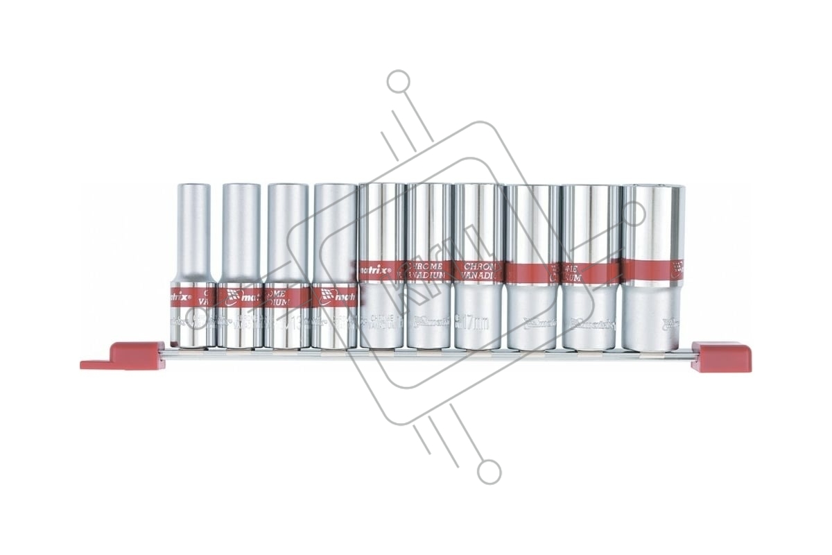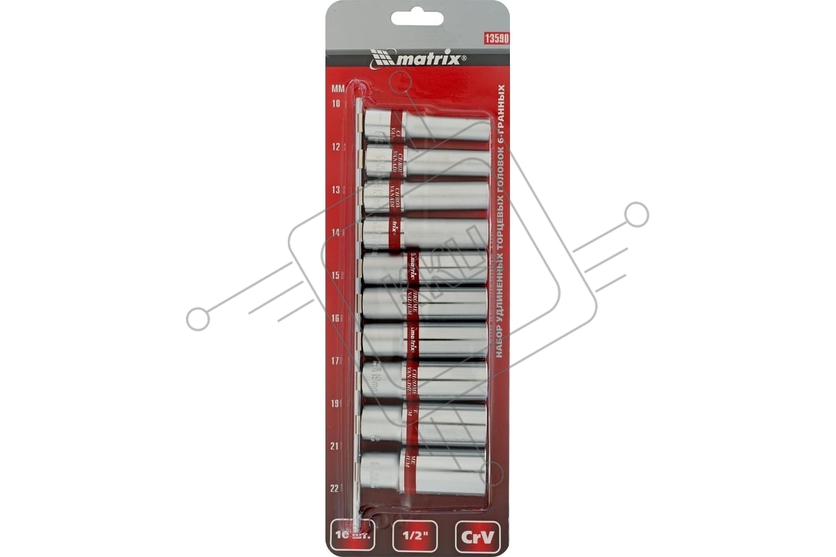 Набор удлиненных торцевых головок Matrix 1/2", 6-ти гр., CrV, 10шт., 10-22мм