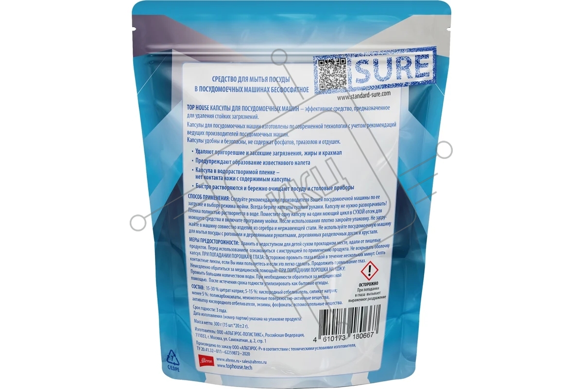 Капсулы для посудомоечных машин Top House, 15 шт (180667)