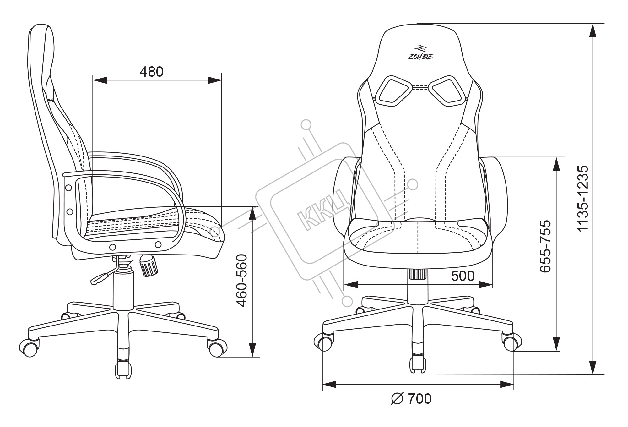 Кресло игровое Бюрократ ZOMBIE RUNNER черный/желтый, искусственная кожа, крестовина пластик