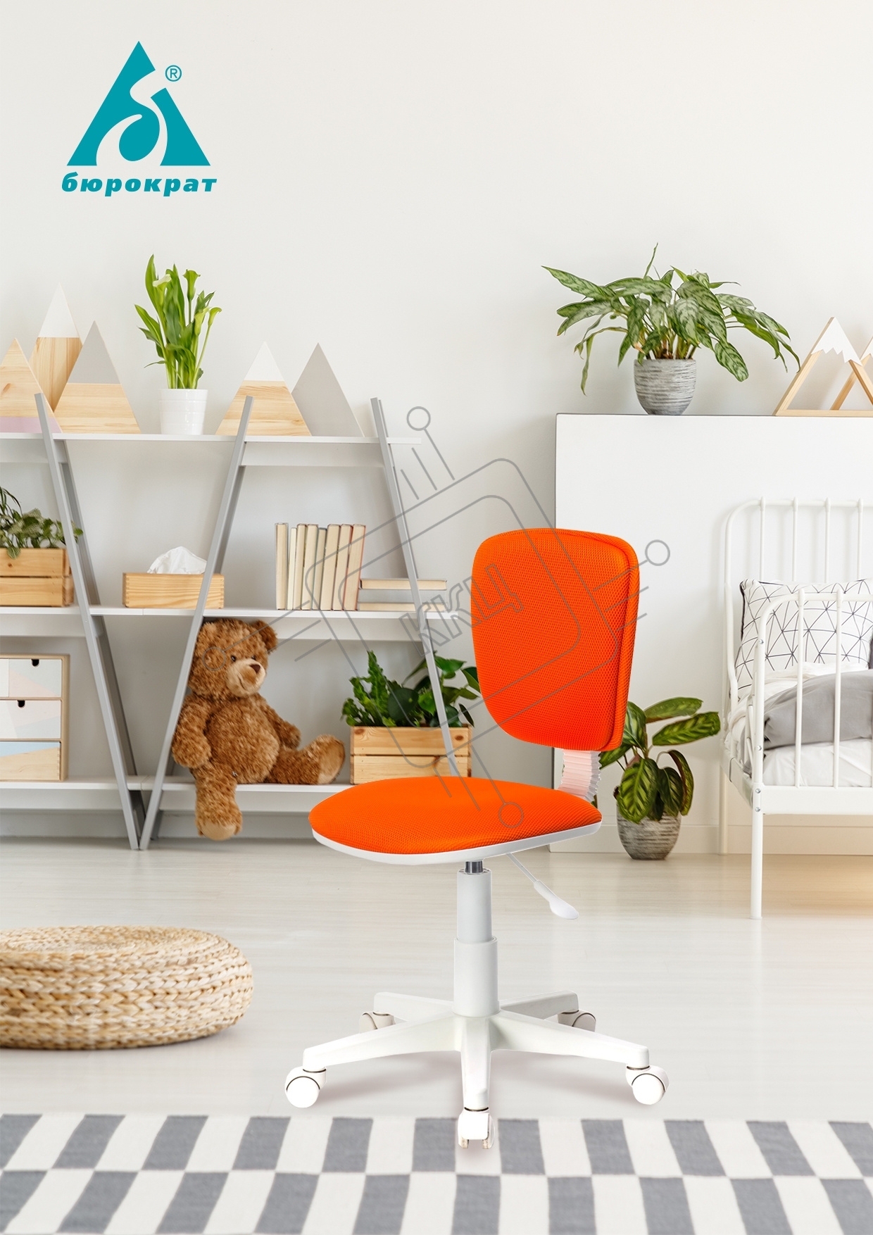 Кресло детское Бюрократ CH-W204NX/ORANGE оранжевый TW-96-1 (пластик белый)