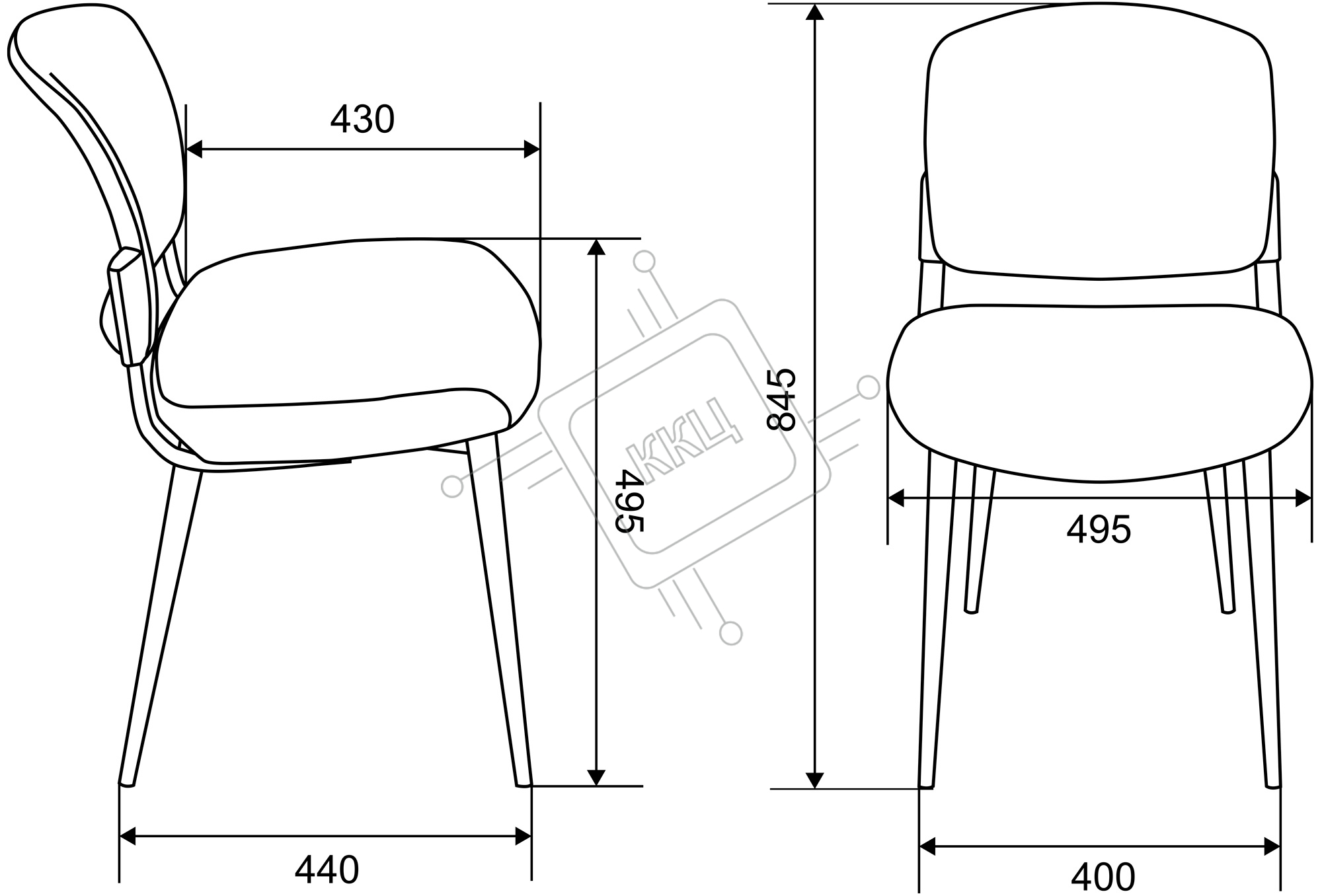 Стул для кухни Бюрократ KF-8W_2 комплект 2шт серый металл белый на ножках (KF-8W/FABRIC/GREY_2)