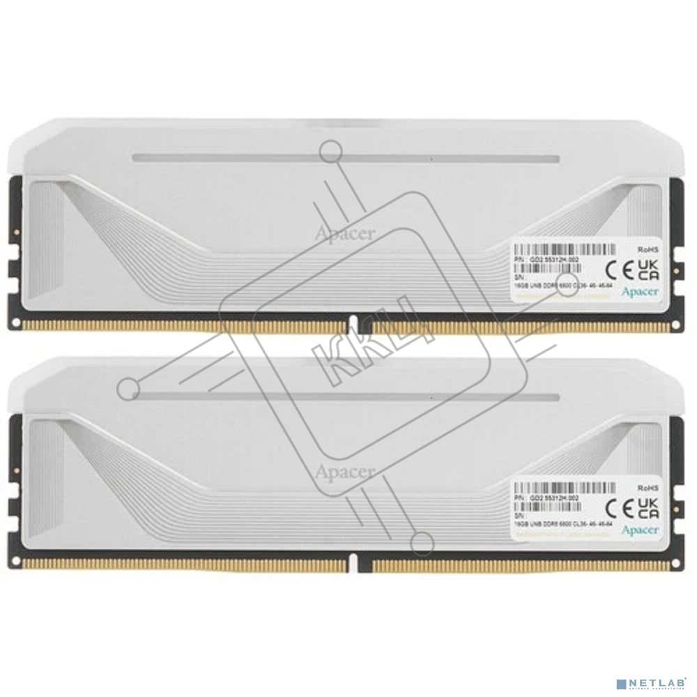 Оперативная память Apacer Nox, DDR5, 32Gb (2x16 Gb), 6800 MHz, CL34, DIMM, радиатор, RGb, белый