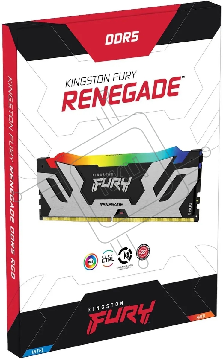 Оперативная память Kingston Fury Renegade, DDR5, 32GB (2x16GB), 7600MHz, CL38, DIMM, с радиатором, RGB, серебристый/черный