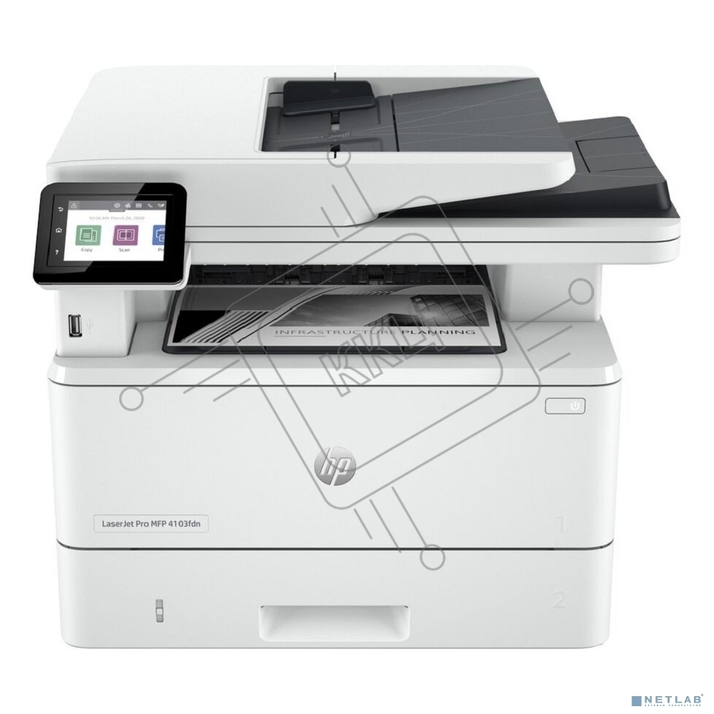 МФУ лазерное HP LaserJet Pro MFP 4103fdn_BBU (2Z628A_BBU) A4, 1200dpi, 38ppm, 512Mb, 1200 MHz tray 100+250 pages USB+Ethernet Prin, старт. картр. 3050стр.151A