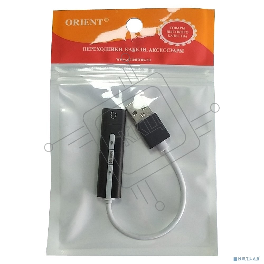 ORIENT AU-04PLB, Адаптер USB to Audio (звуковая карта), jack 3.5 mm (4-pole) для подключения телефонной гарнитуры к порту USB, кнопки: громкость +/-, играть/пауза/вперед/назад; Windows/Linux/MAC OS