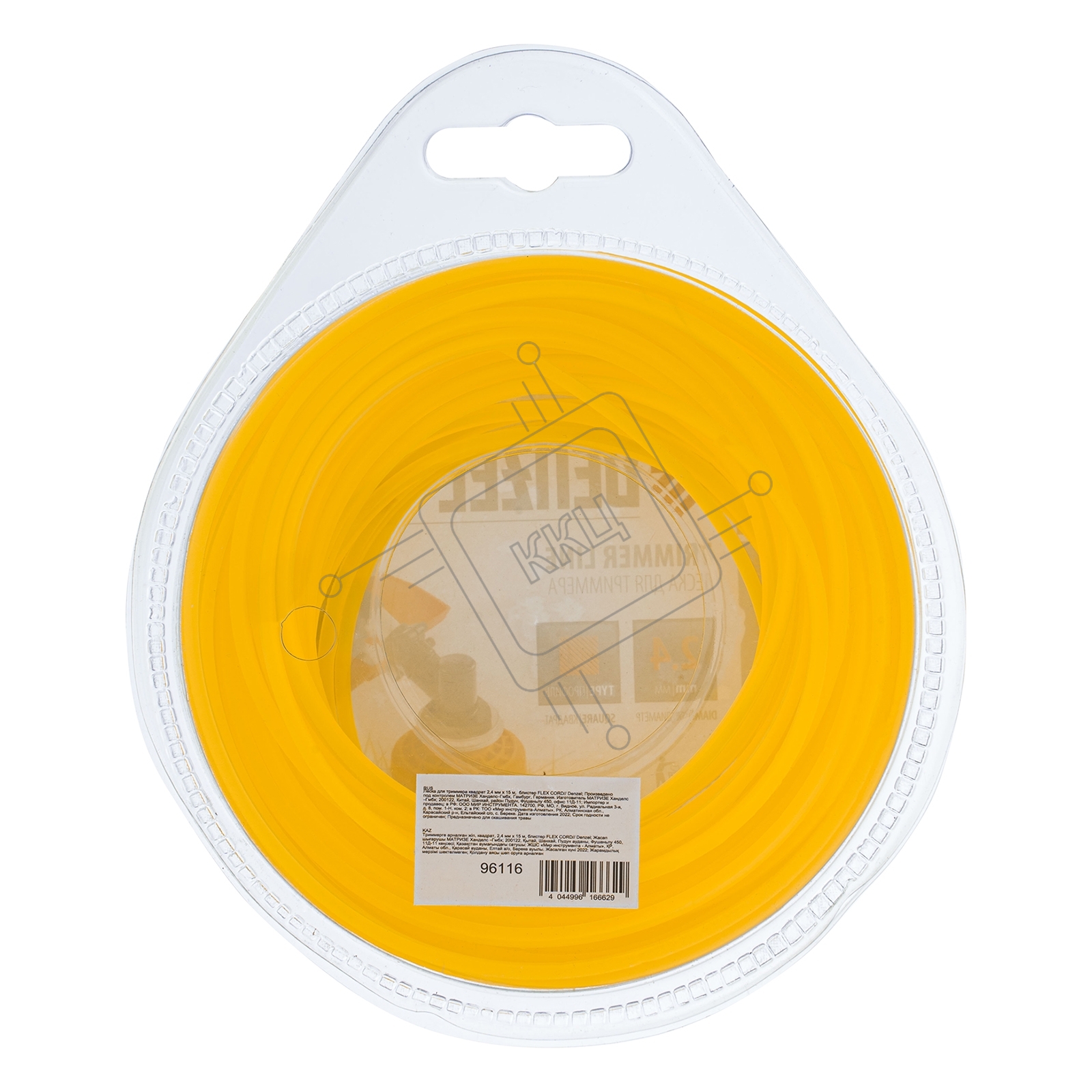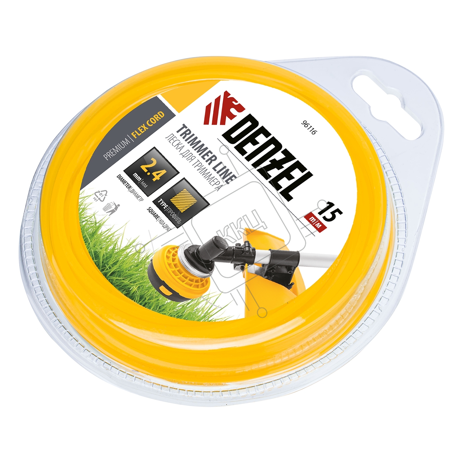 Леска для триммера Denzel квадрат 2,4 мм х 15 м, блистер FLEX CORD 96116