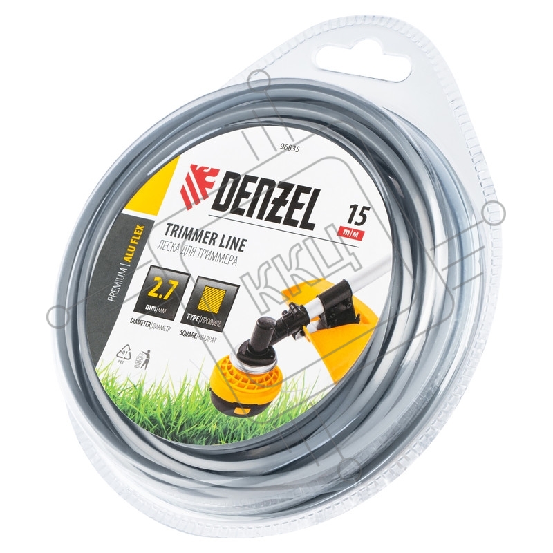 Леска для триммера армированная алюминием квадратная, 2,7мм х 15м, блистер ALUFLEX Denzel