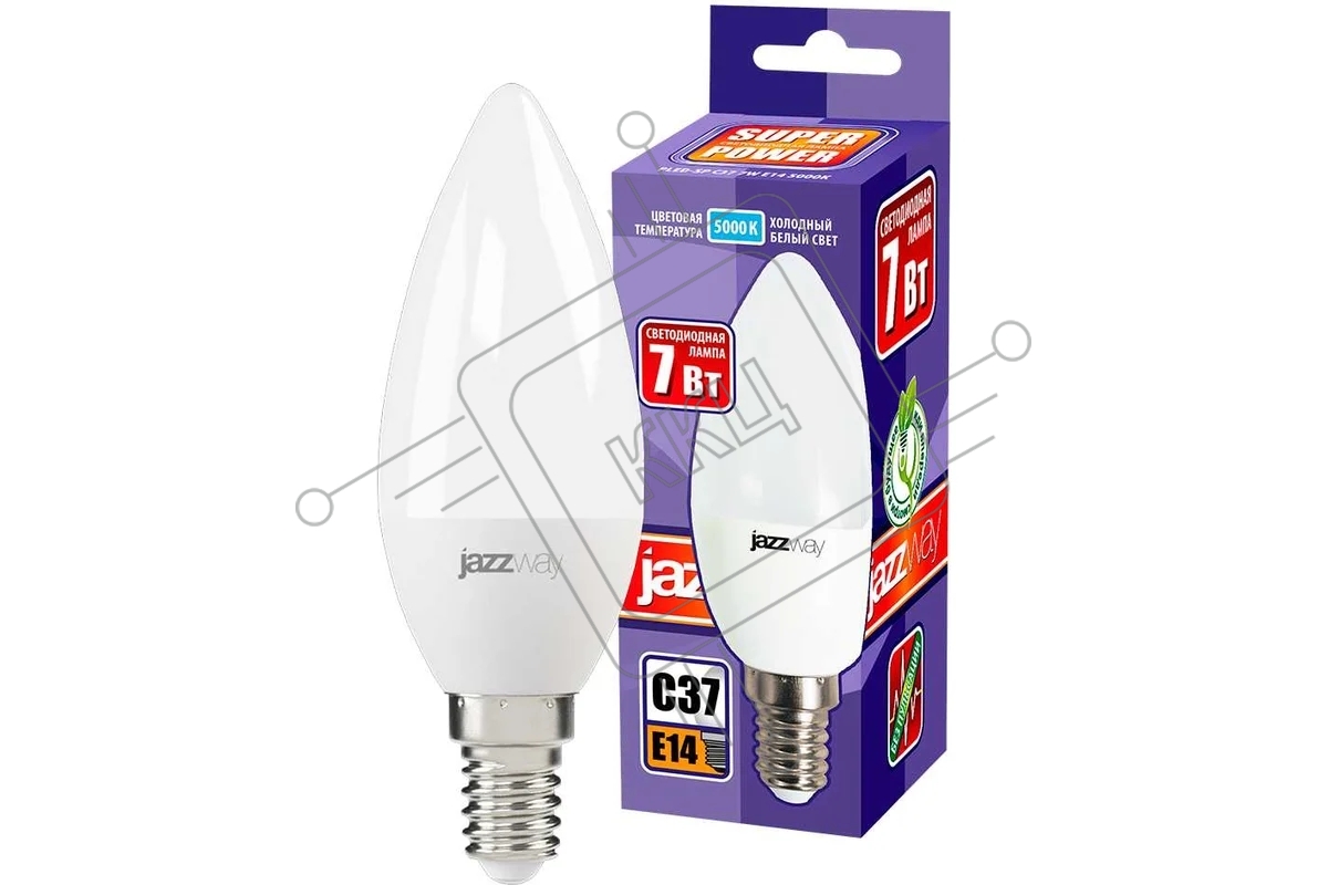 Лампа светодиодная JazzWay PLED-SP C37 7Вт свеча 5000К холод. белый E14 560лм 230В