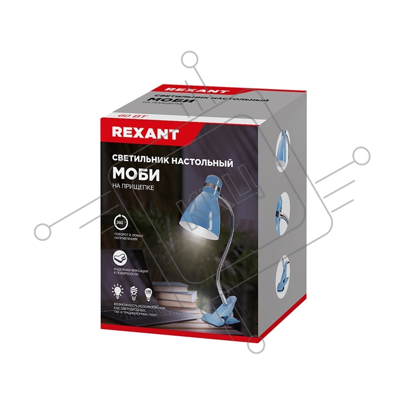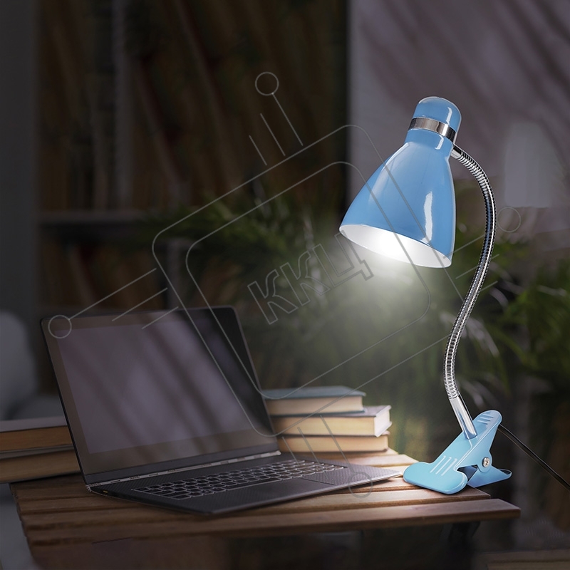 Светильник настольный Моби Rexant на металлической стойке с зажимом-прищепкой, с цоколем Е27, 60 Вт, цвет летнее небо