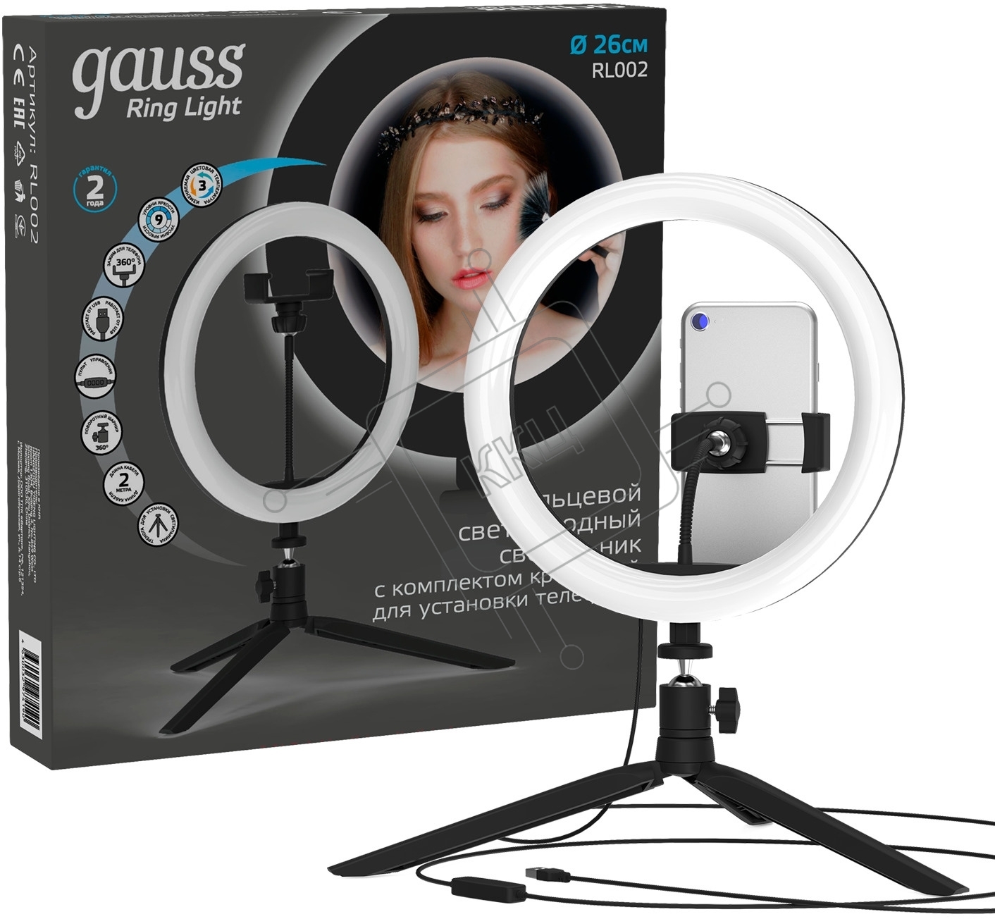 Светильник кольцевой Gauss 14W 700lm 3000-6500K 5V USB IP20 260*23мм черный дим пульт LED