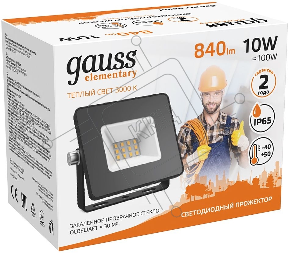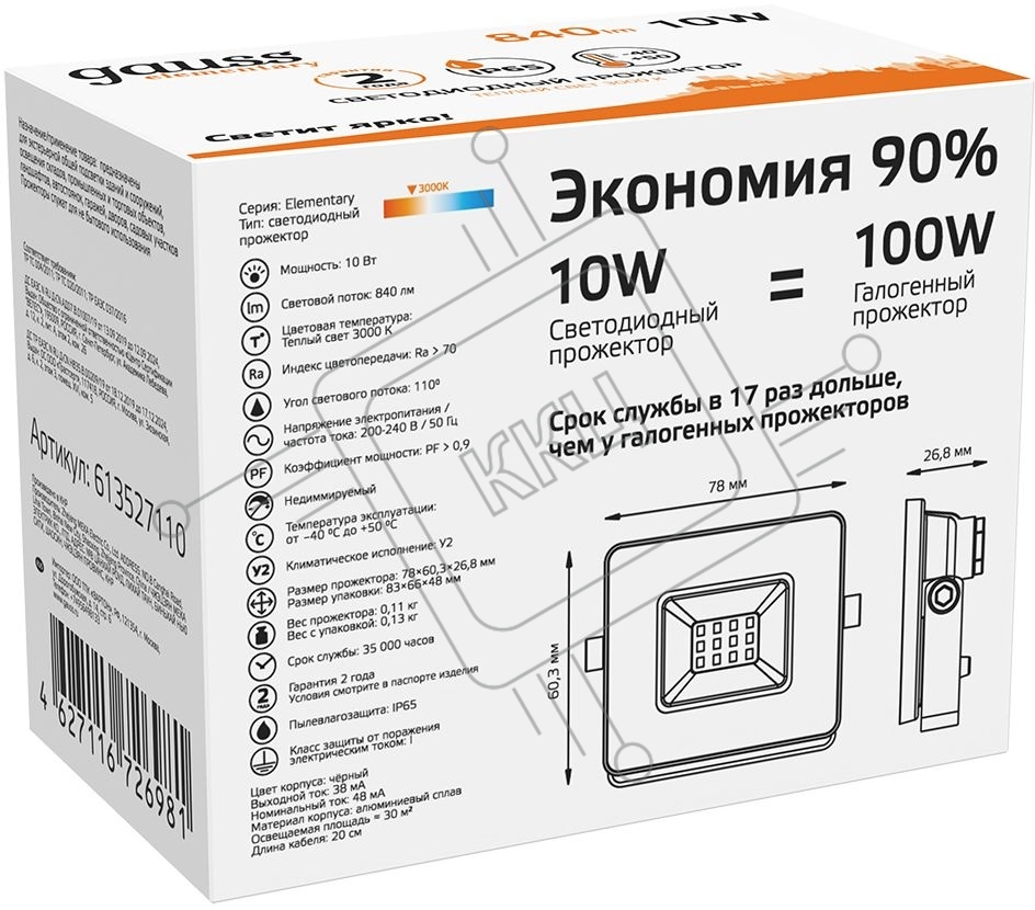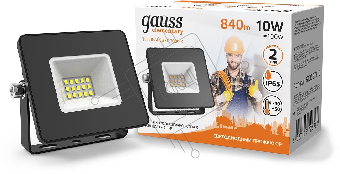 Прожектор светодиодный Gauss LED 10W 670lm IP65 3000К черный 613527110 Gauss