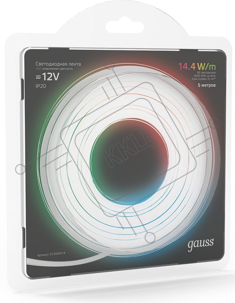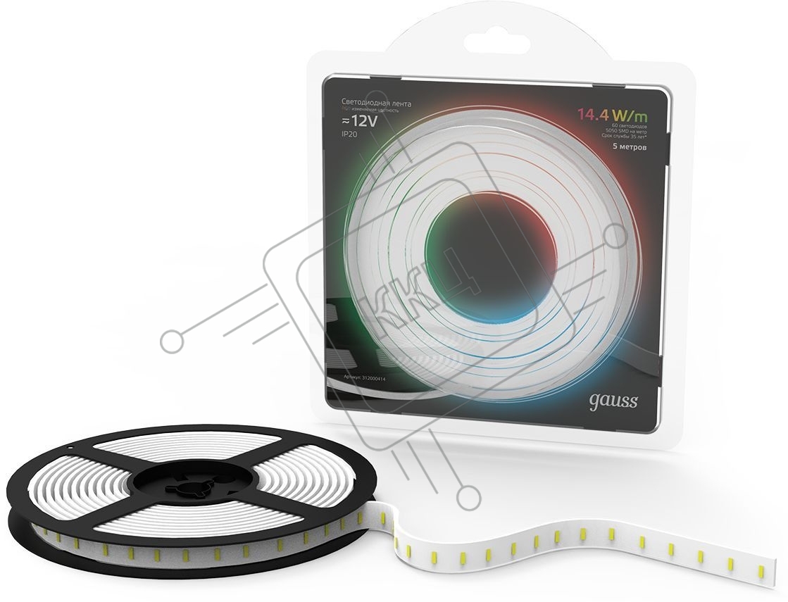 Лента светодиодная Gauss 312000414 LED 5050/60-SMD 14.4W 12V DC RGB блистер 5м