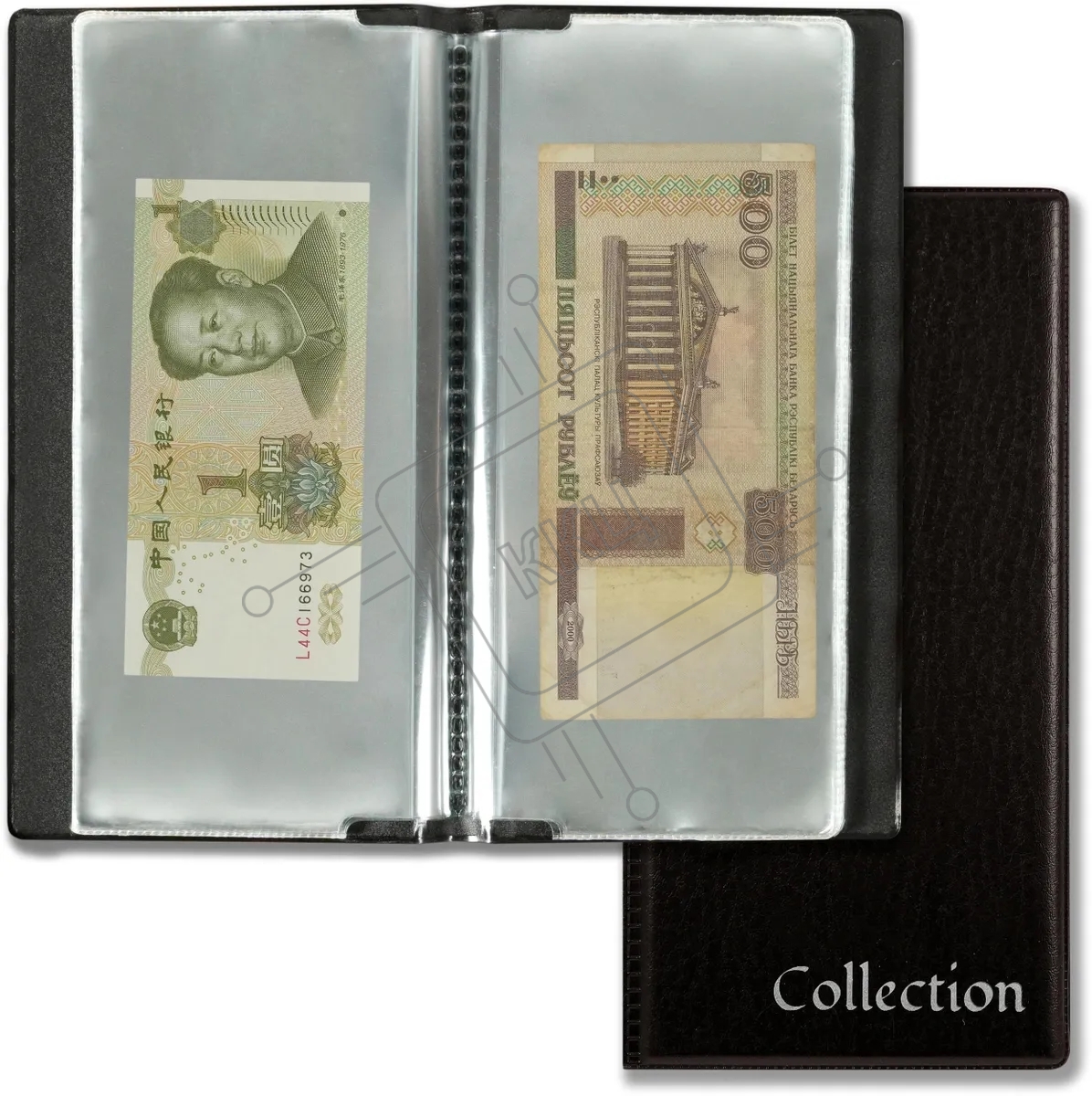 Папка с 20 прозр.вклад. Silwerhof Кляссер для банкнот ПВХ 0.25мм коричневый 120x220мм